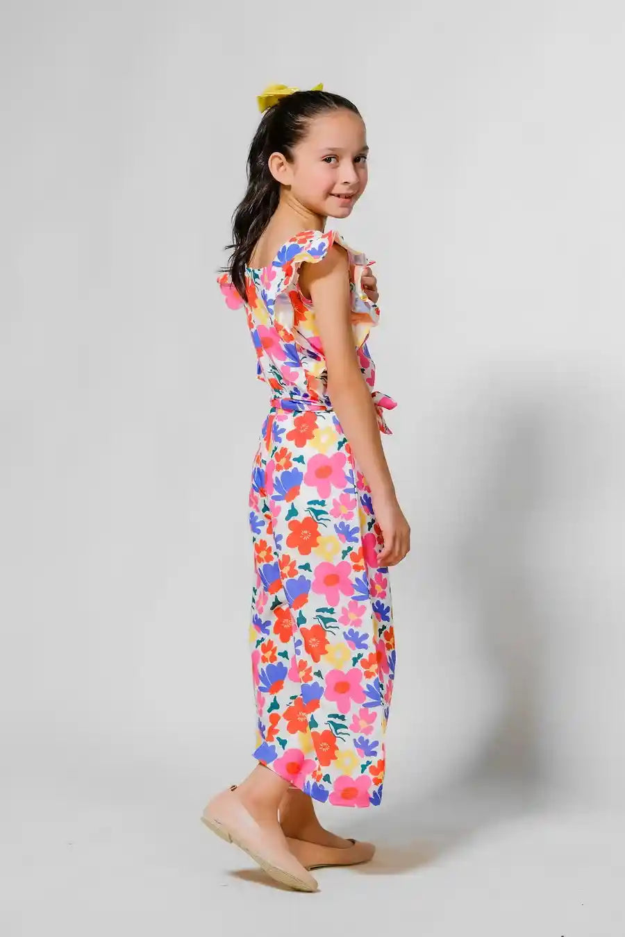 Add a splash of sunshine to your little one's wardrobe with the Sunny Blossoms Jumpsuit. This bright and cheerful jumpsuit is adorned with colorful floral prints, capturing the joyful essence of summer. Ruffled sleeves and a tie waist ensure a comfortable and stylish fit.