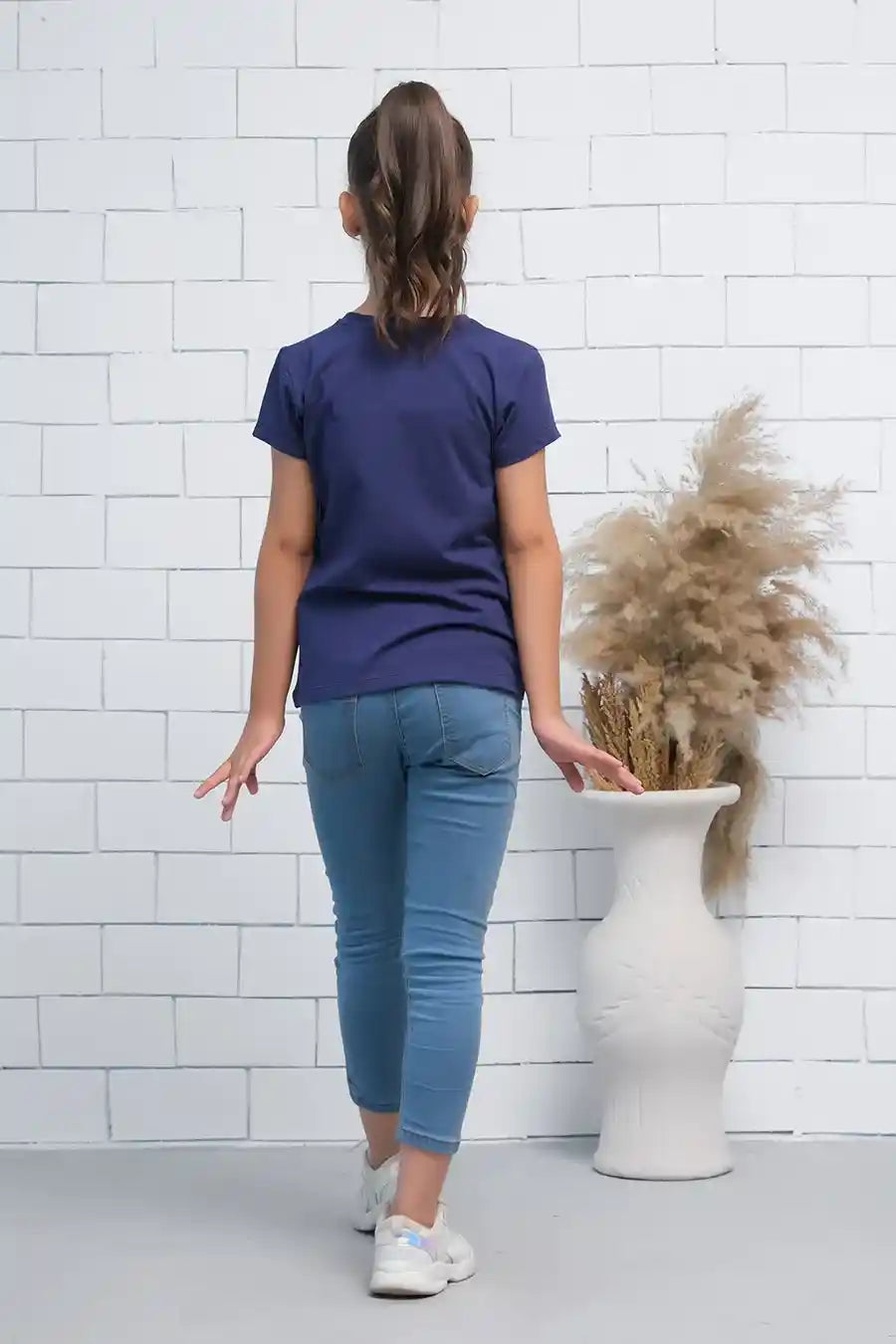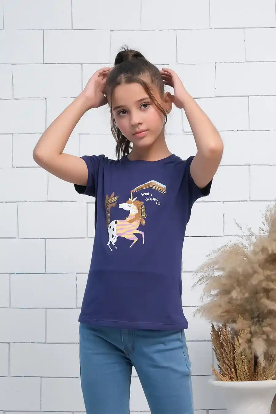 Navy Blue Short Sleeves Colourful Unicorn Print Tee