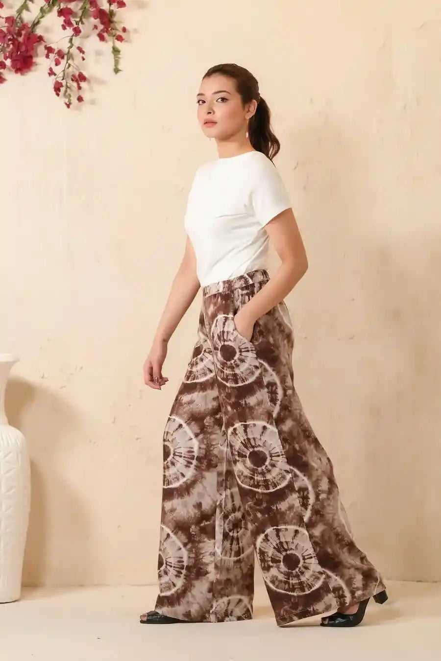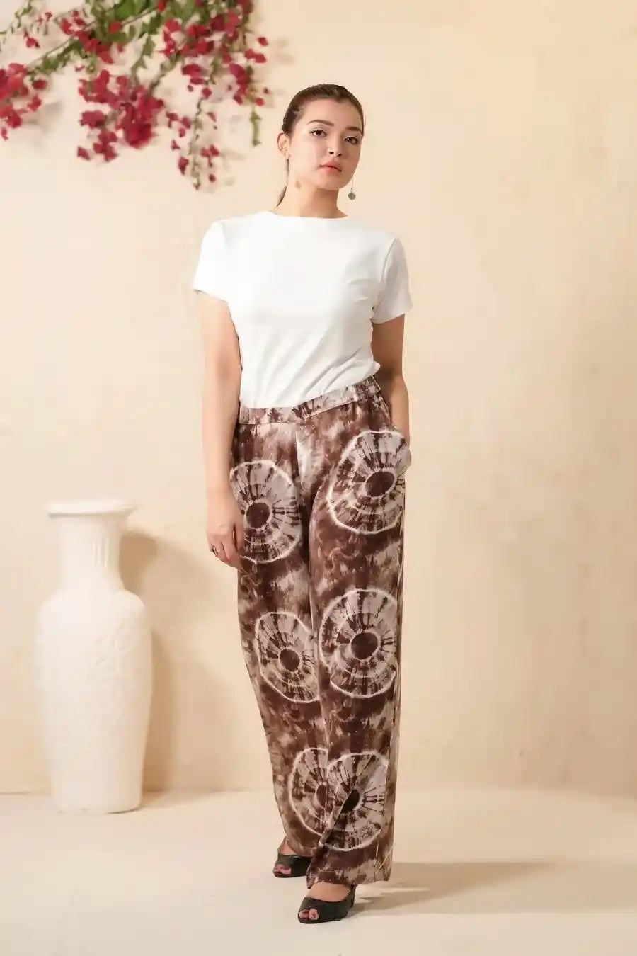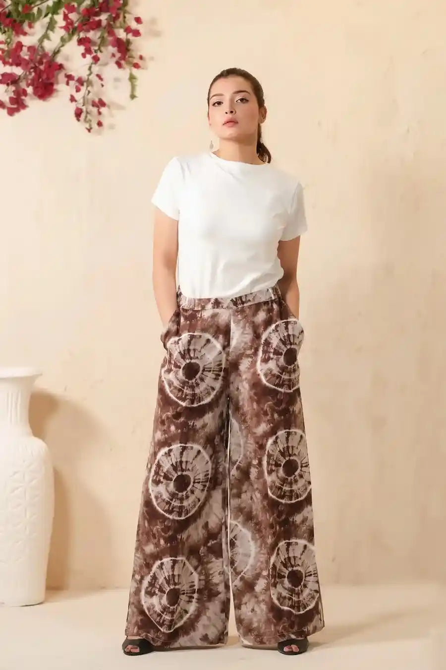 Tie Dye Slash Brown Flare Wide Leg Trouser