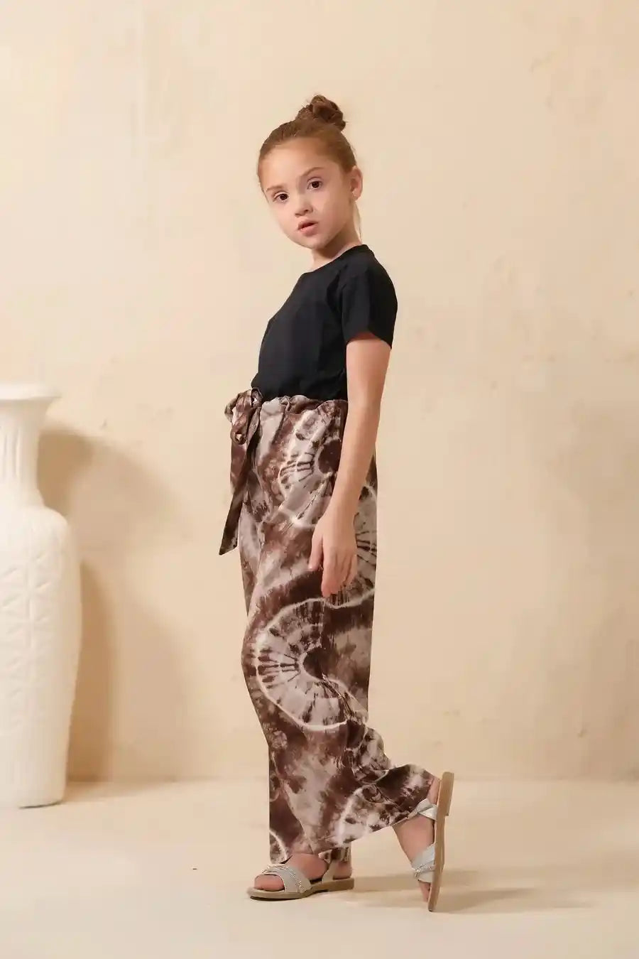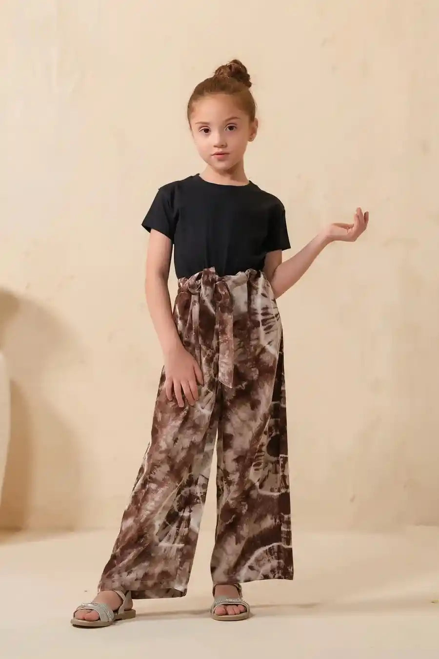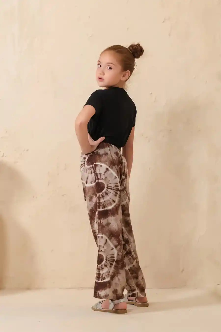 Tie Dye Slash Brown Flare Wide Leg Trouser