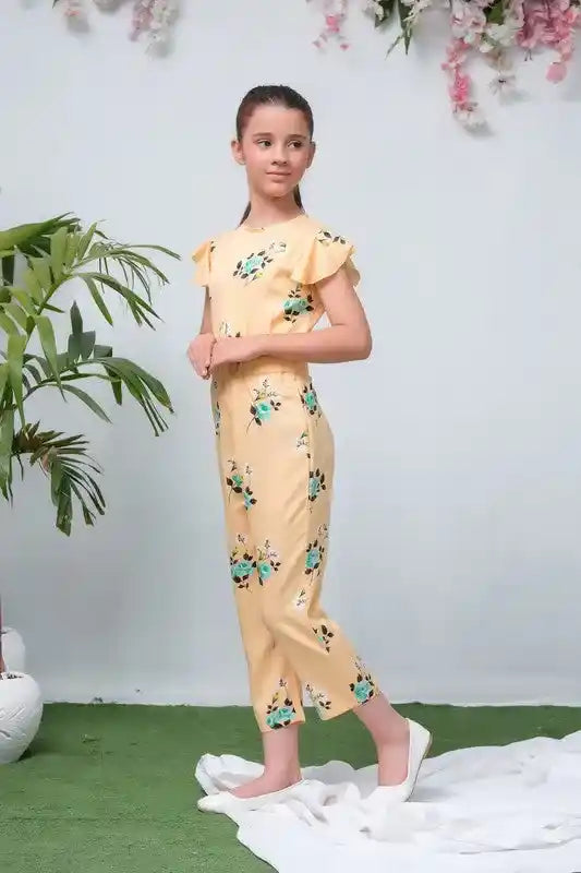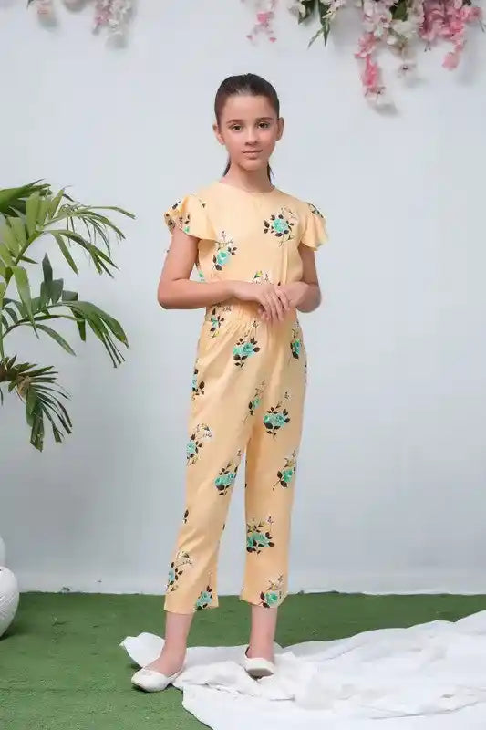 Yellow with Green Floral Print Smart Fit Jumpsuit
