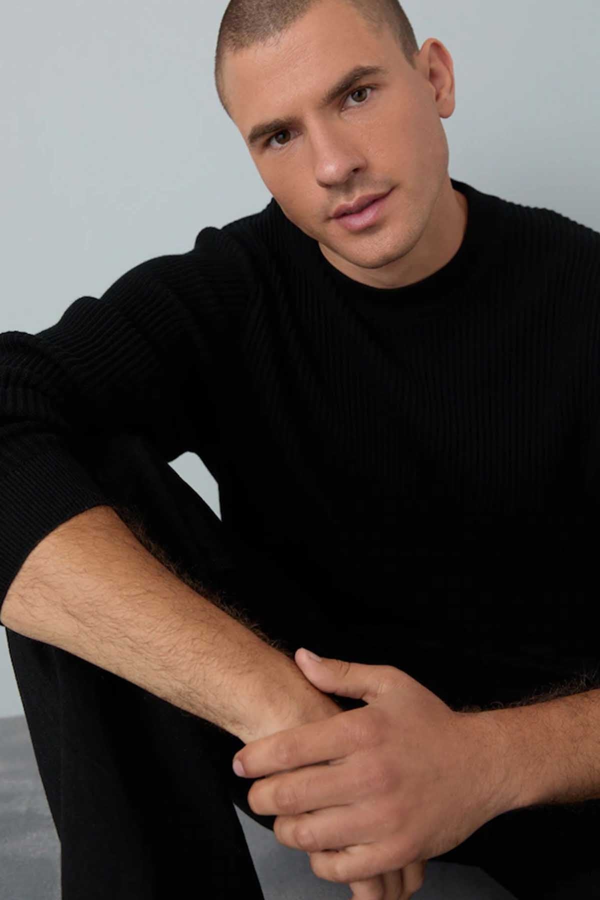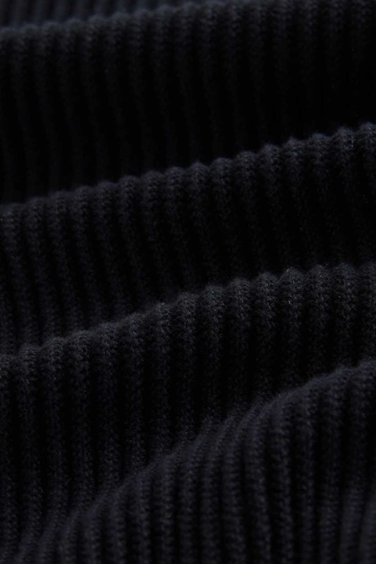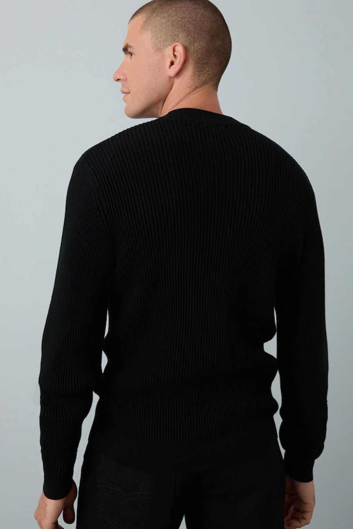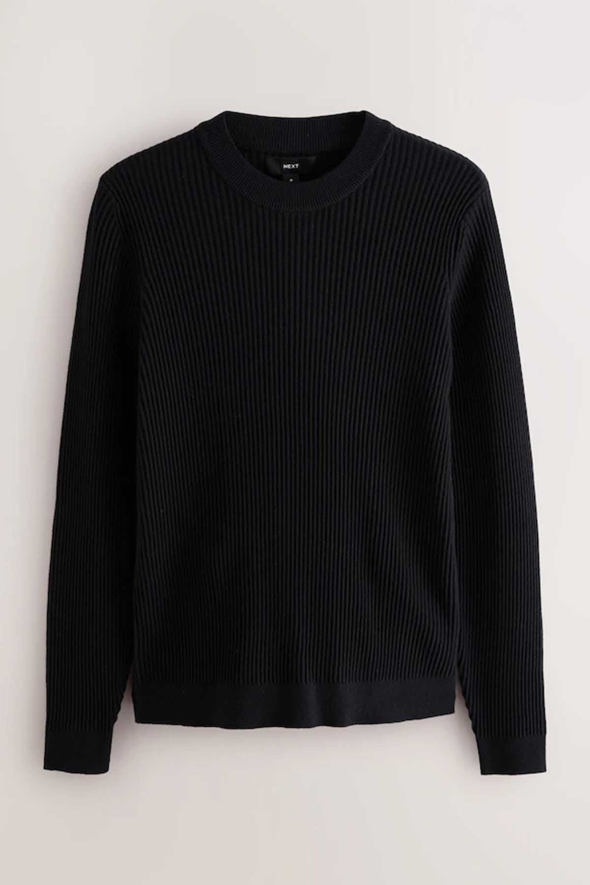 Black Regular Fit Rib Texture Crew Jumper