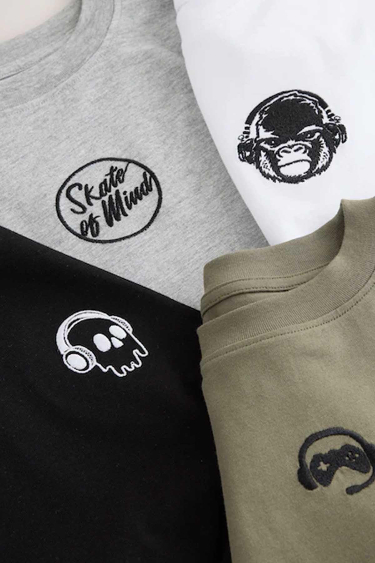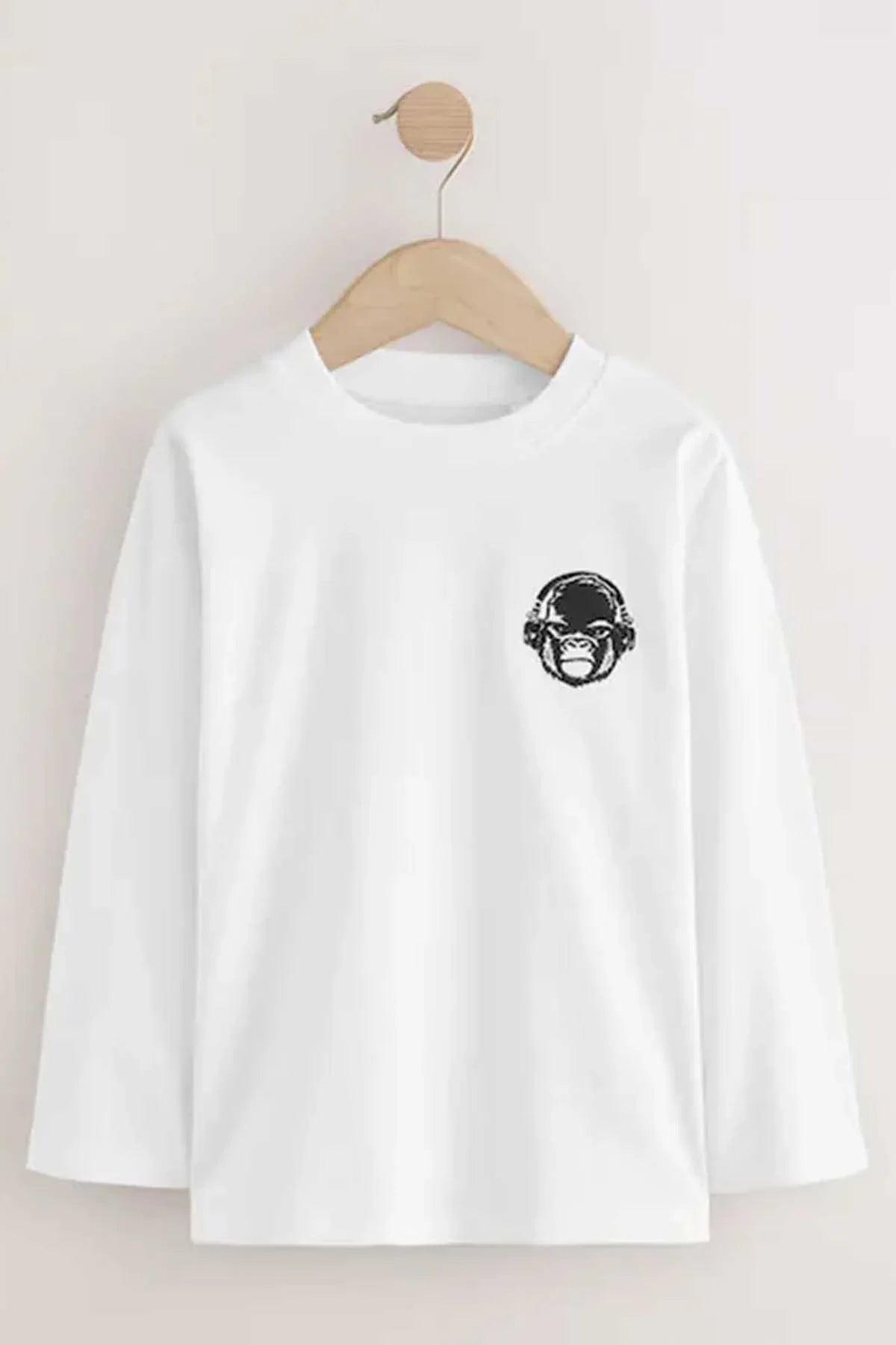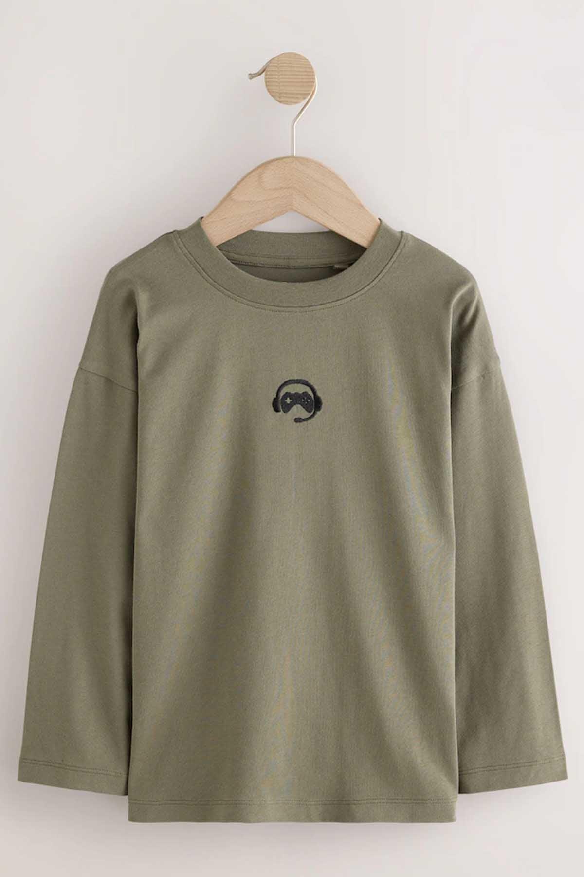 Black/White/Grey Marl/Khaki Long Sleeve Small Graphic T-Shirts 4 Pack (3-16yrs)