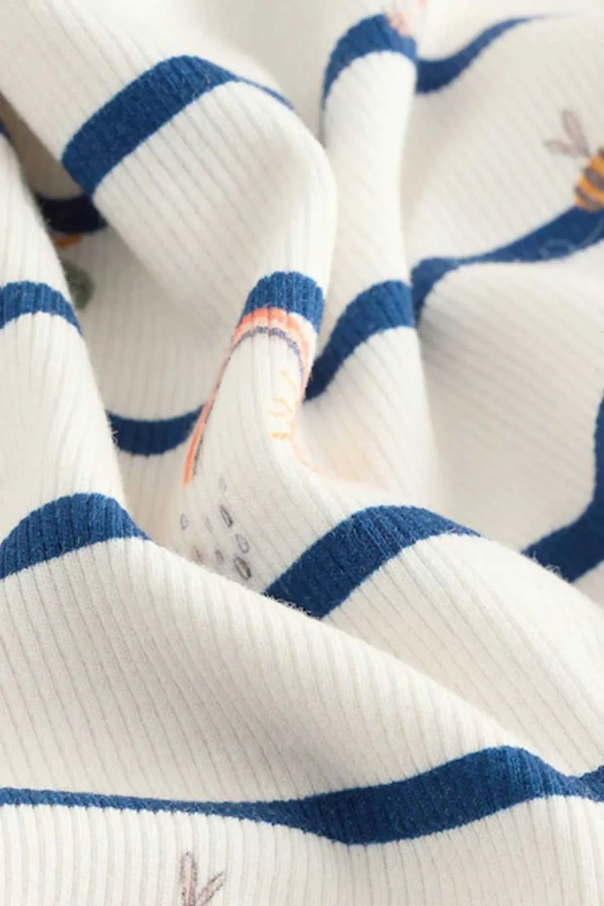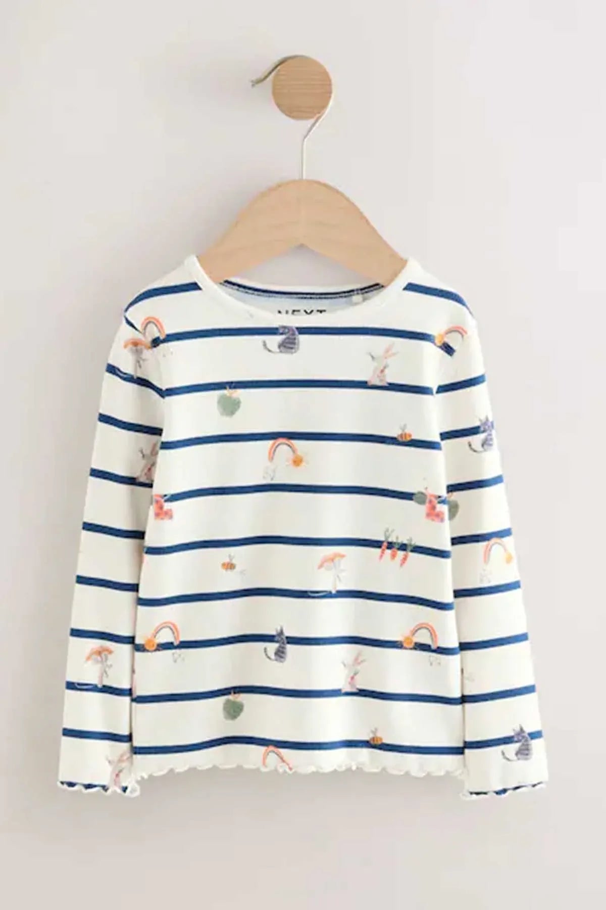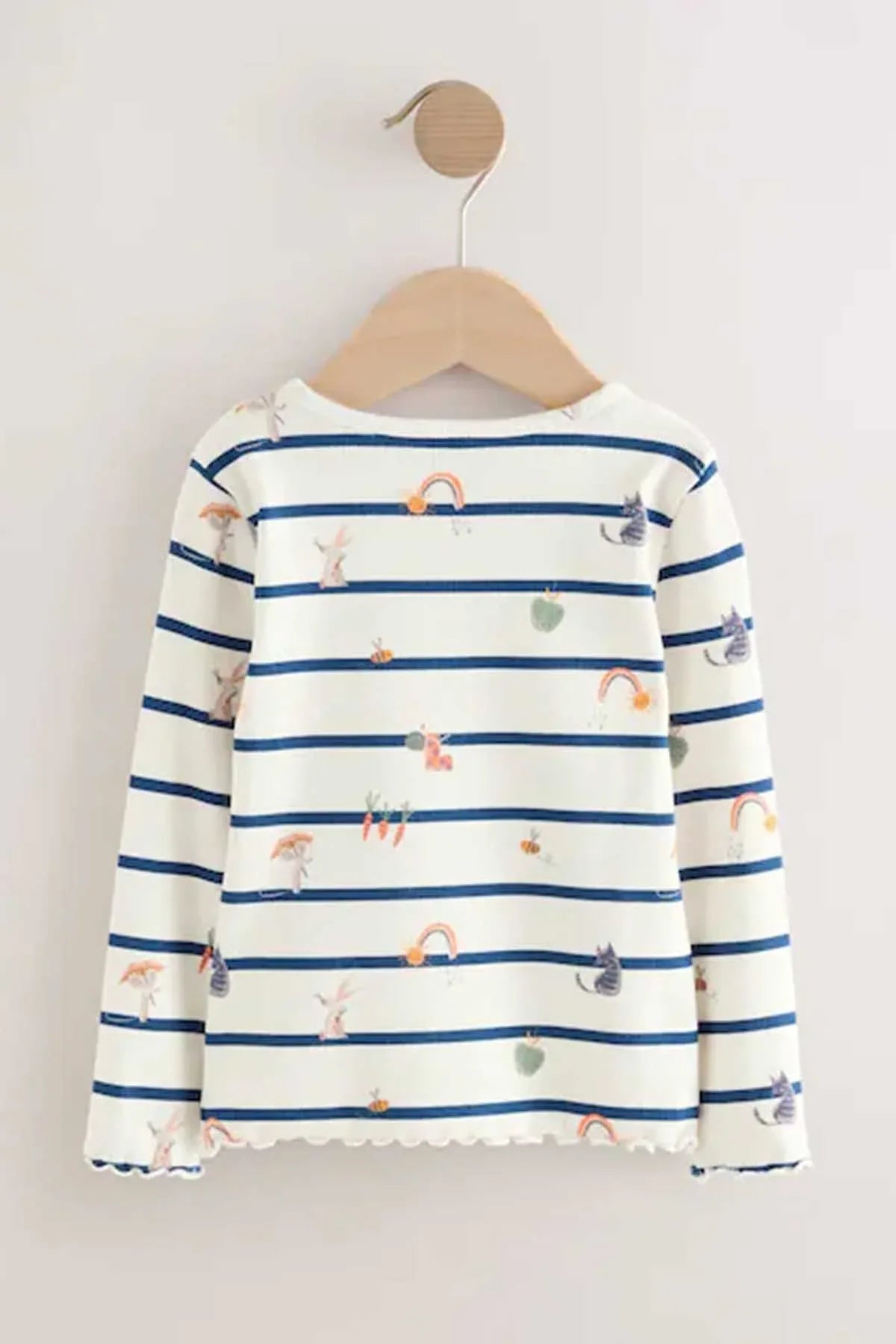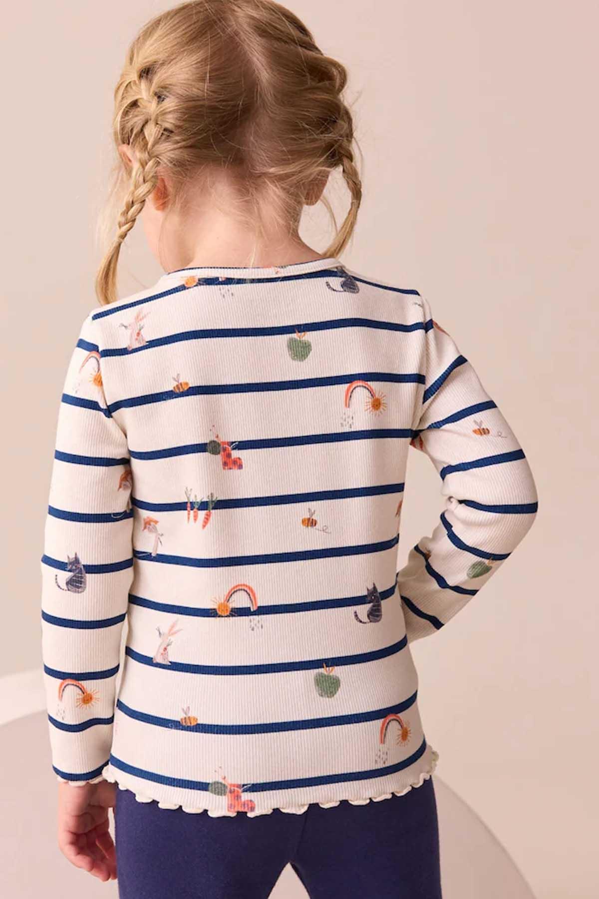 Ecru/Navy Stripe Character Rib Long Sleeve T-Shirt (3mths-7yrs)