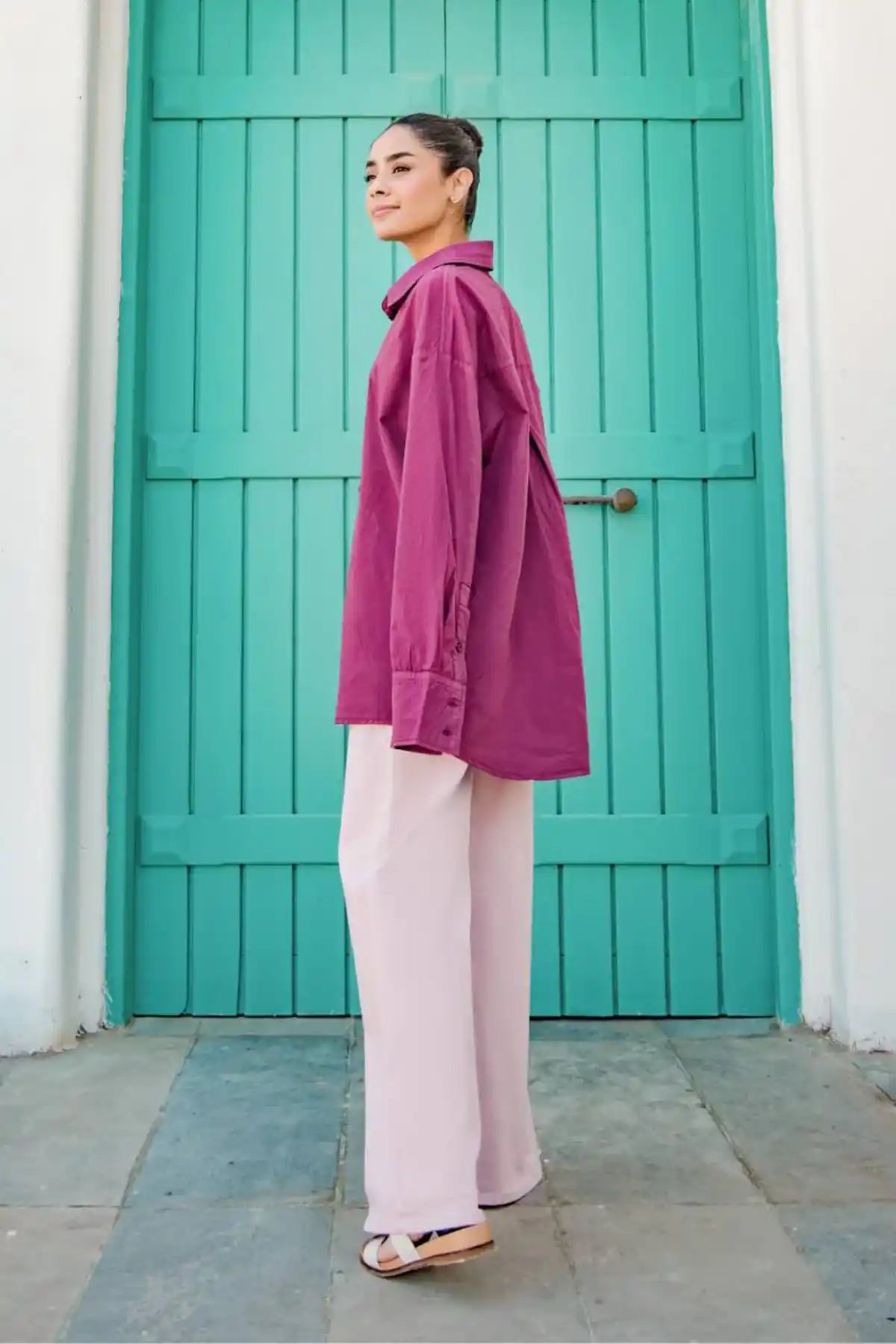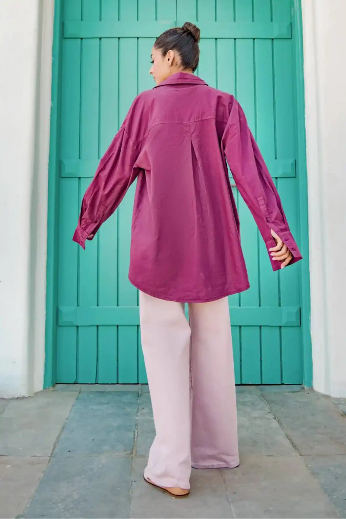 100% Cotton. Classic Smart Casual Solid Vibrant Button Down Shirt Featuring Basic Collar And Long Sleeves With Button Closure Cuff. Rear Yoke And Inverted Pleat. Curved Hem