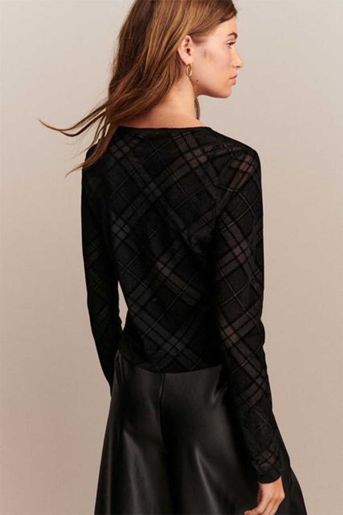 Black Long Sleeve Flocked Mesh Cardigan