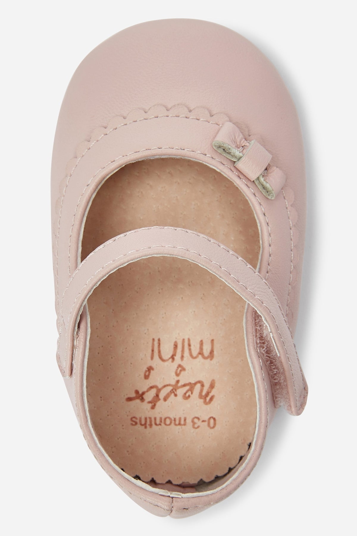 Made with soft and supple leather, these Mary Jane pram shoes have a sweet scallop and bow design. Designed with a touch and close fastening for easy fitting.
