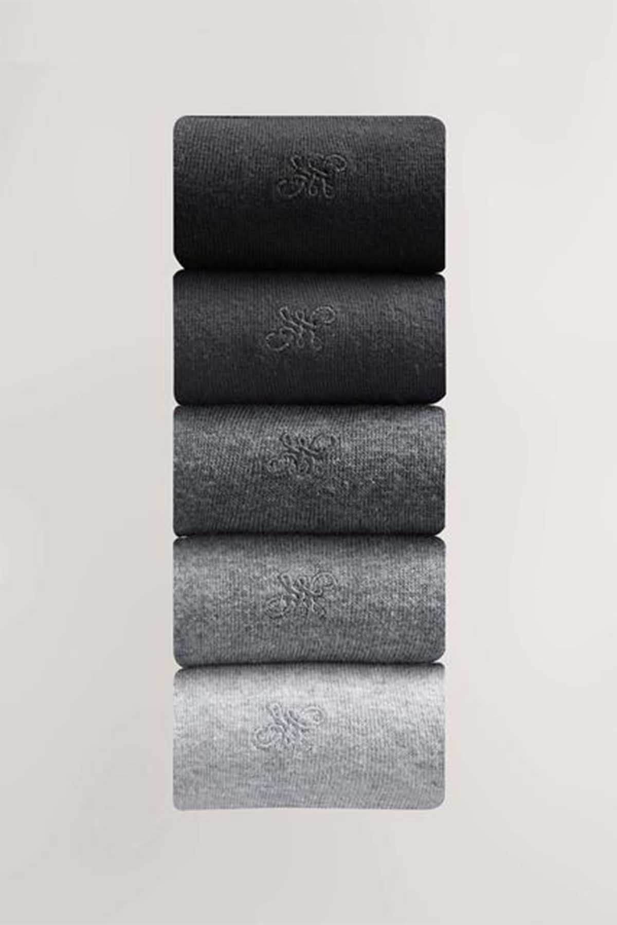 Grey 5 Pack Embroidered Lasting Fresh Socks