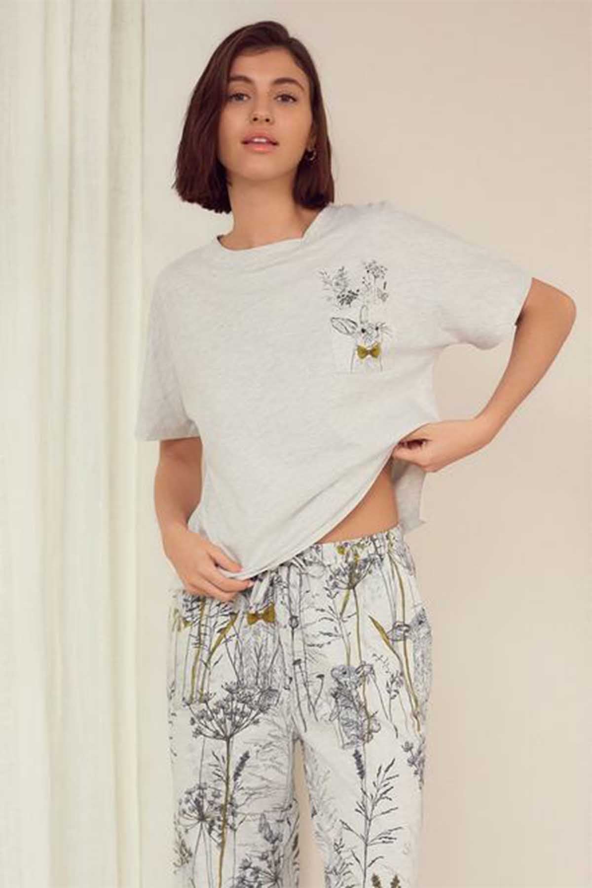 Grey Bunny Jersey Short Sleeve Pyjamas