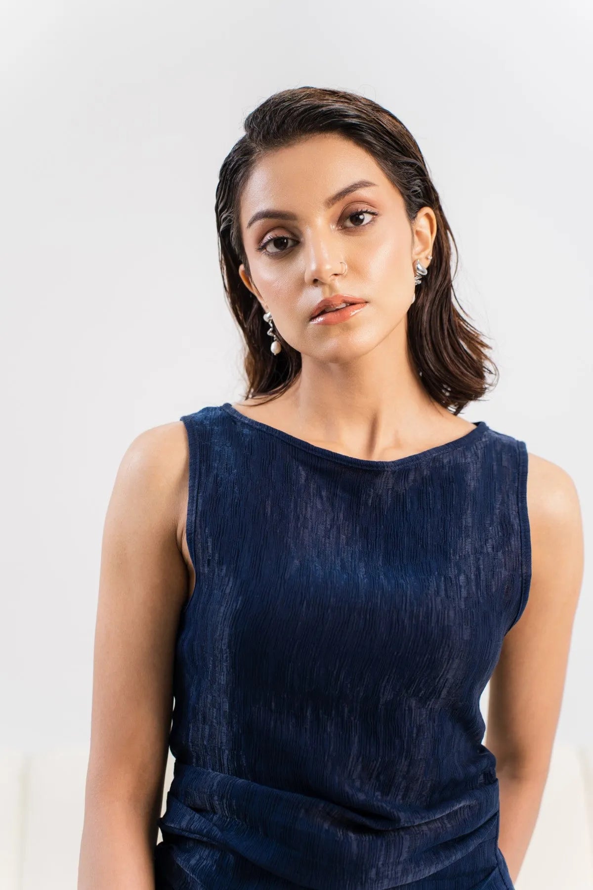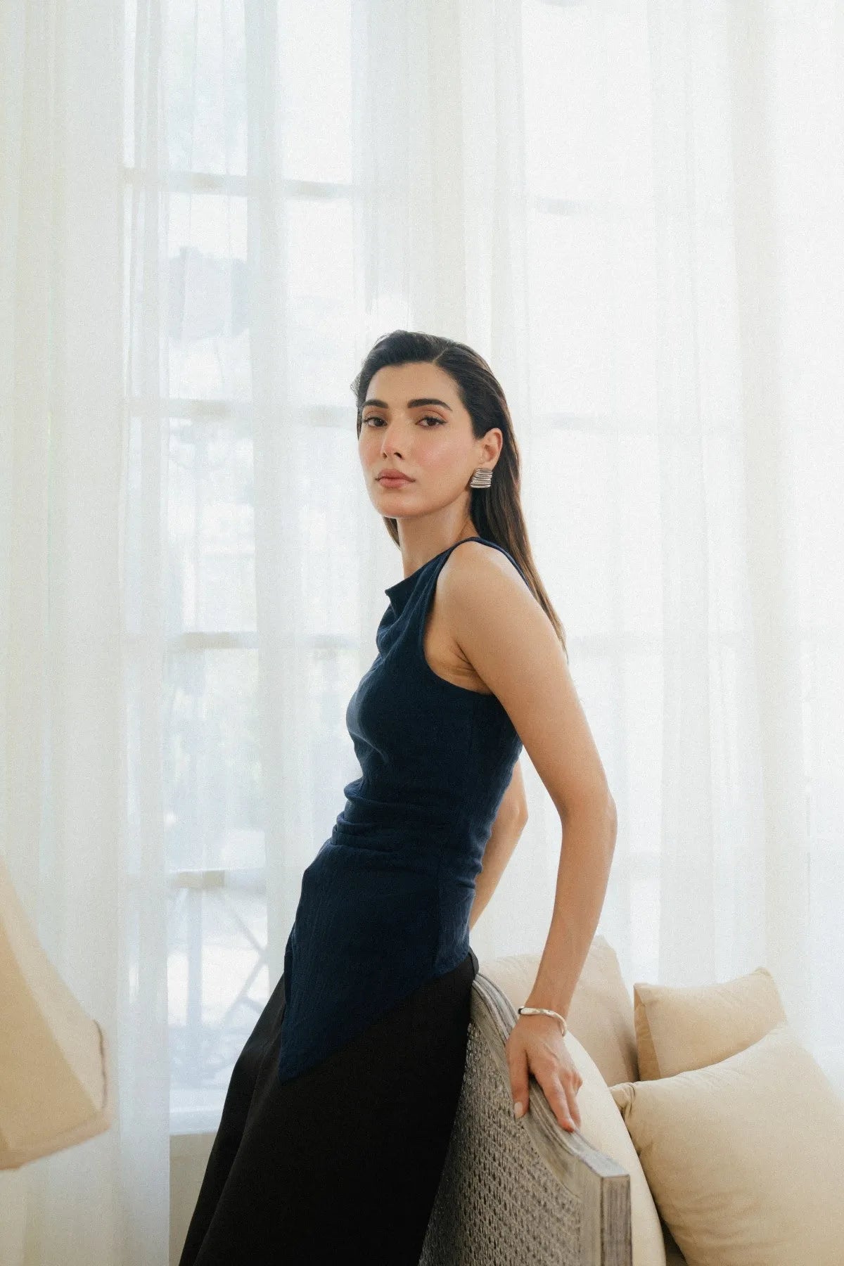 Crafted from luxurious imported fabric, this top features a chic halter neck, a ruched side, and an asymmetric hem. Perfect for adding a stylish twist to your wardrobe.