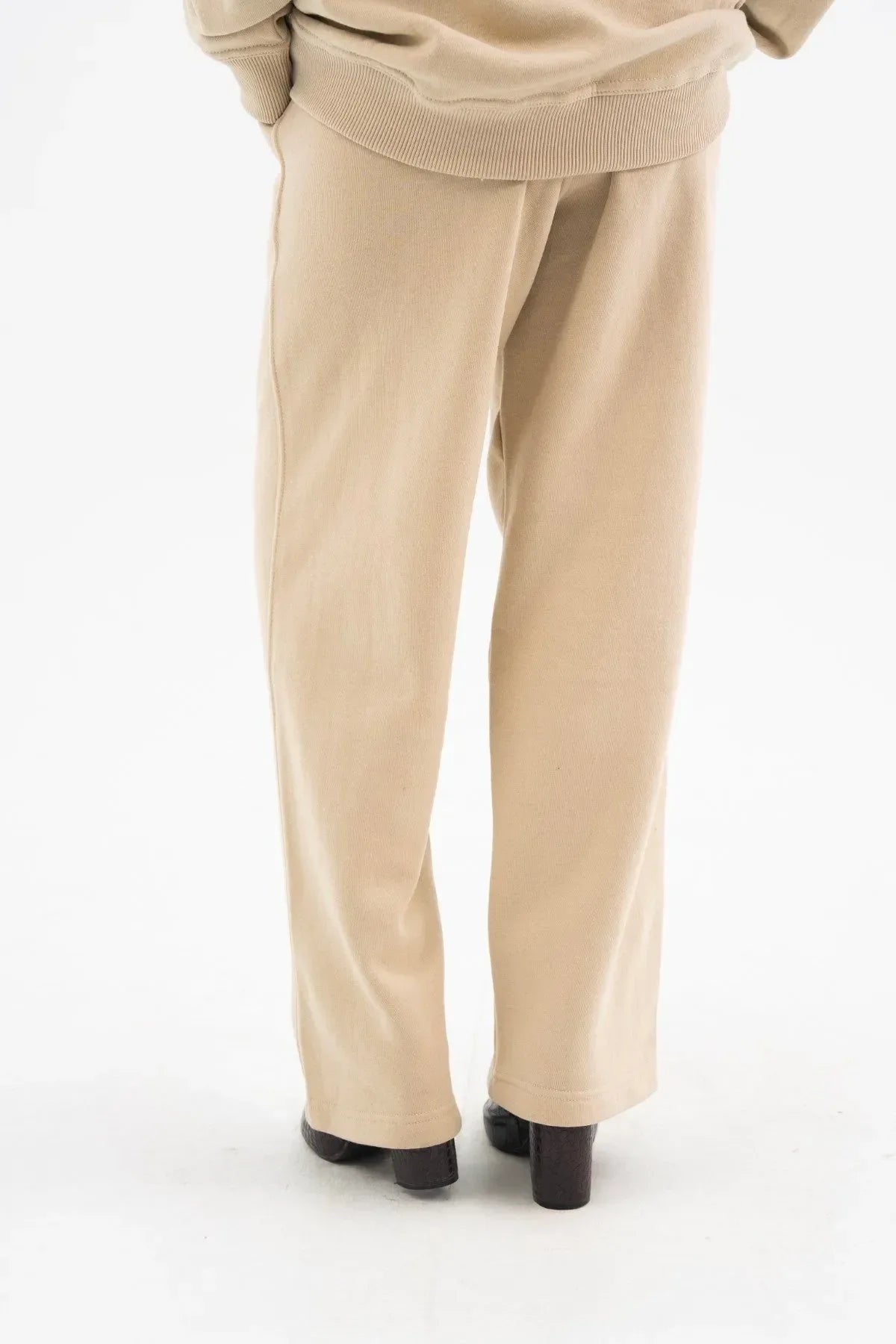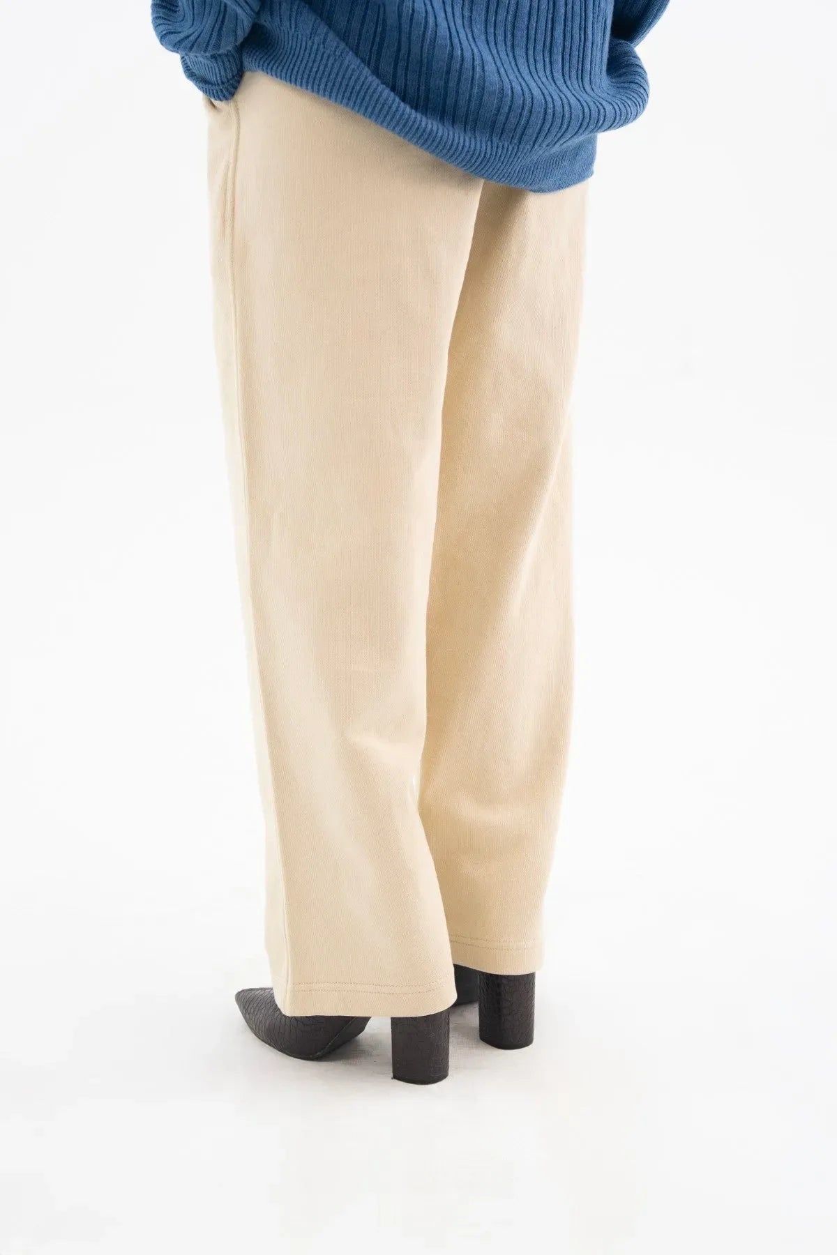 These trousers blend the ease of a relaxed fit with sharp structure. The design comes in wood ash color and built from soft terry fabric. Key structural detail is provided by defined pleats running down the front of the trousers. Comfort is delivered with the secure elastic waist. The adjustable drawstring in the belt features metal eyelets and a clean tipping on the edge of the string for a high-quality finish.