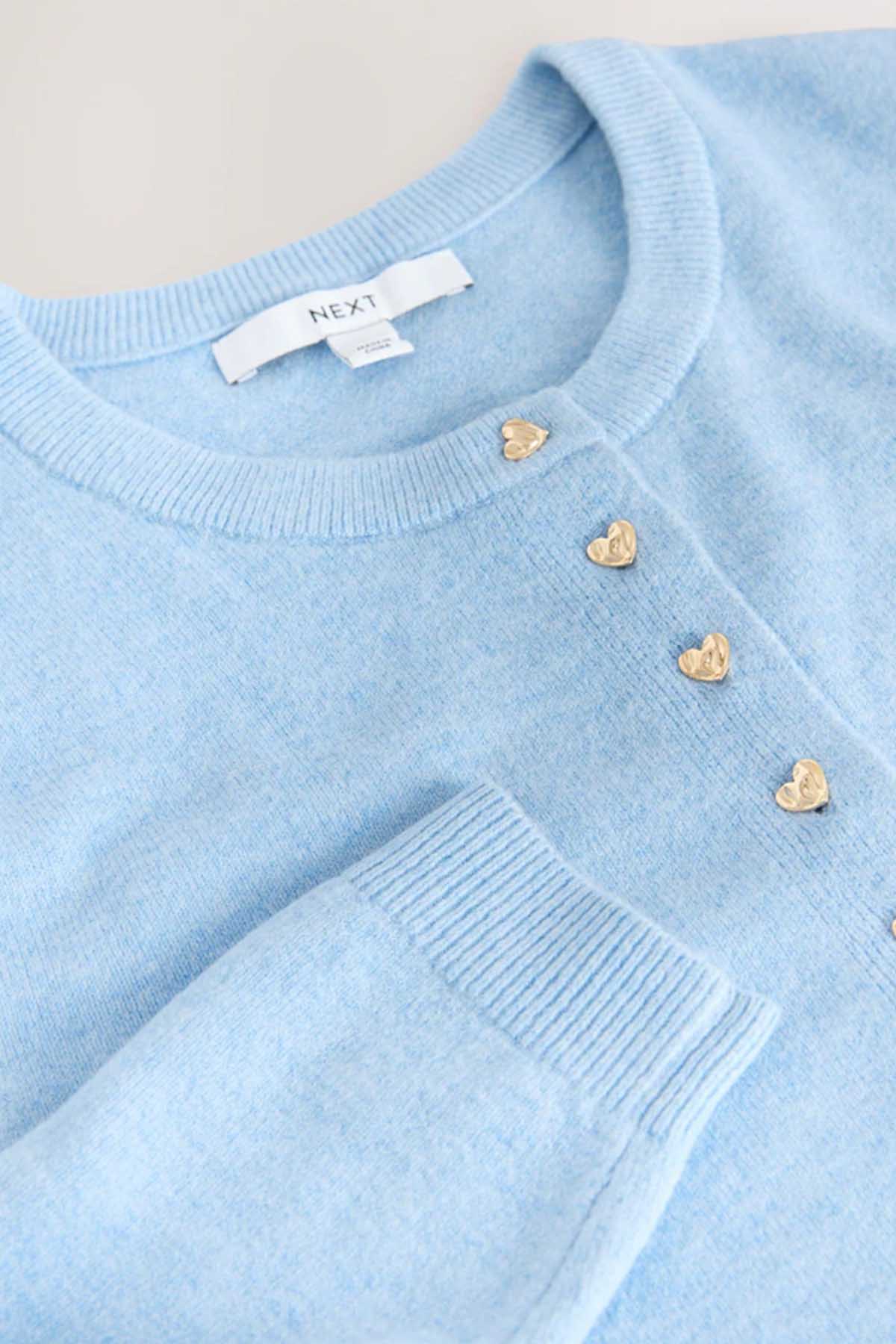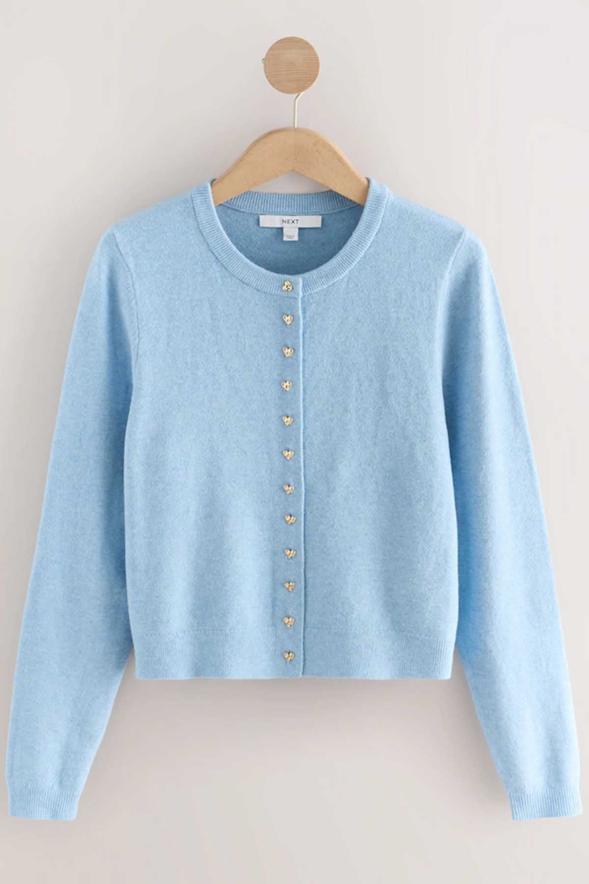 Light Blue Slim Supersoft Crew Neck Cardigan with Wool