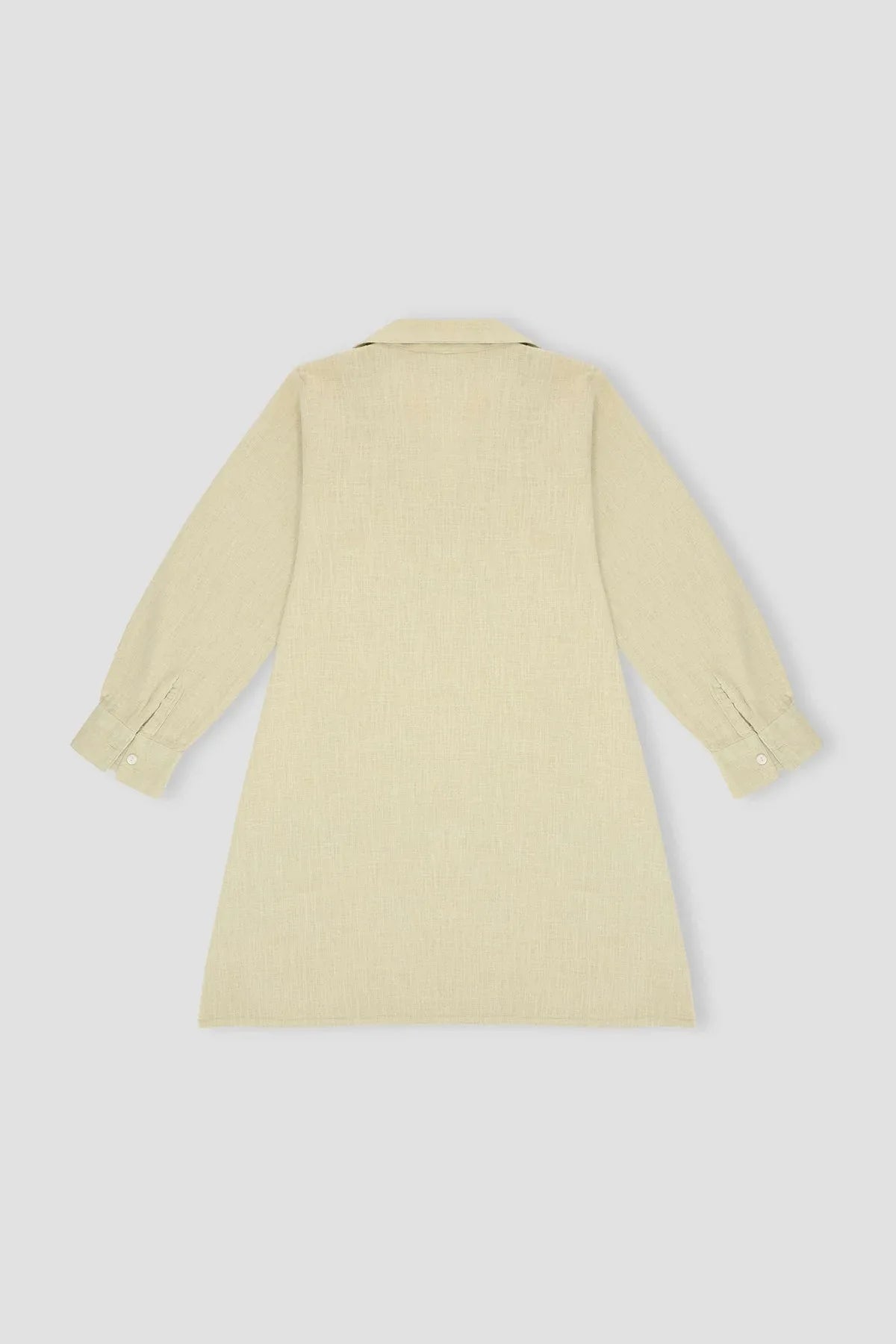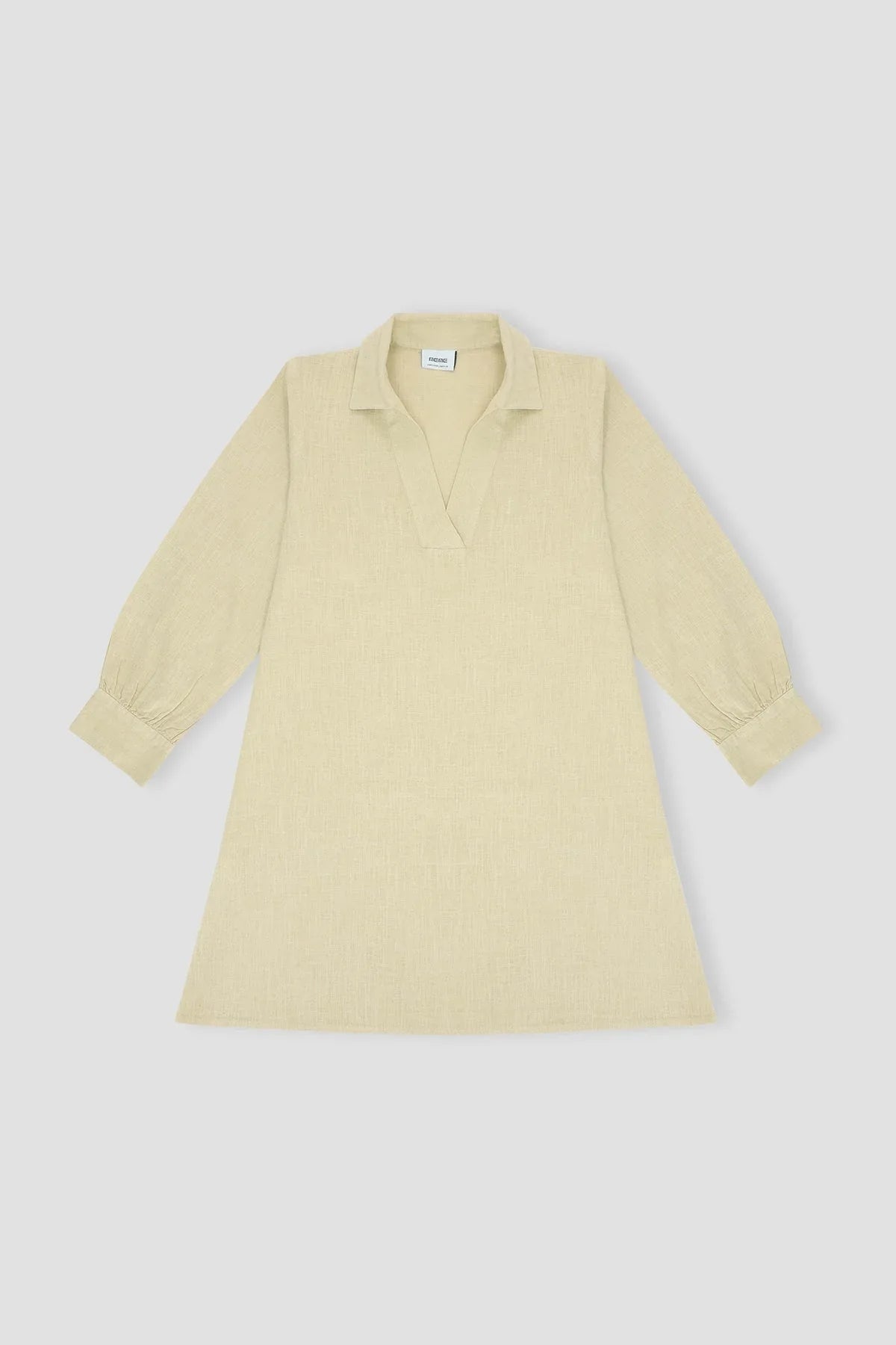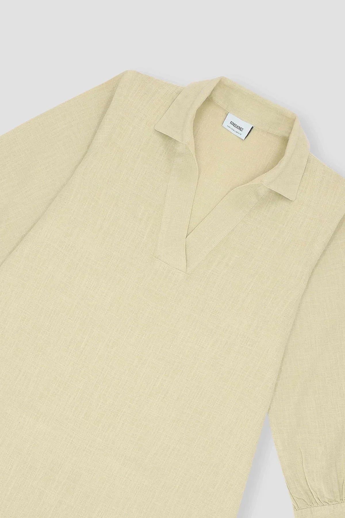 50% Cotton, 50% Linen. Classic Surplice Neckline With Regular Collar. Long Sleeves With Cuffs Straight Hem.