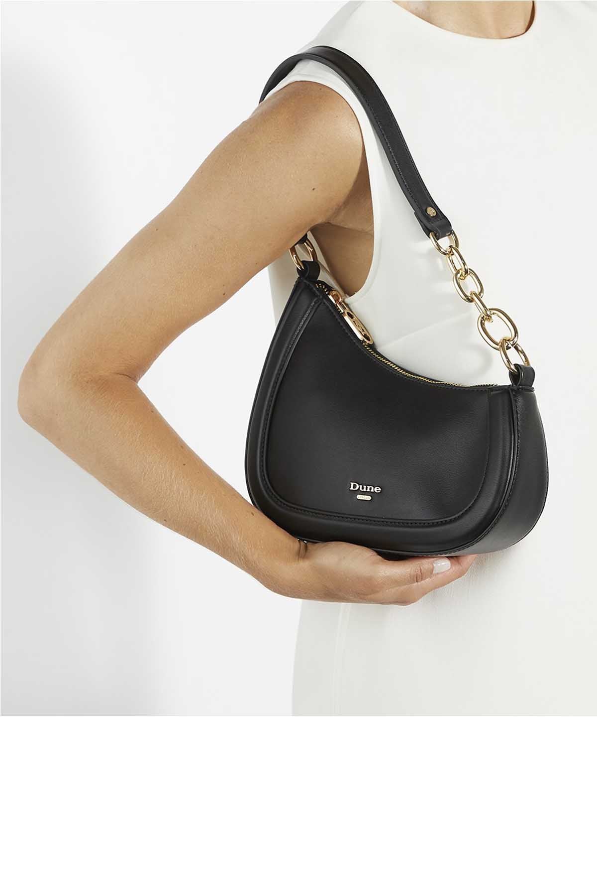 This Angular Sculpted Silhouette Has Been Designed To Sit Under The Arm When Worn On The Shoulder. Combining Comfort And Style The Part Chain Handle Held In Placed With Ringlets On Either Side Has Been Crafted From Gold Chain Links. Featuring Our Signature Branding On The Front The Detachable Shoulder Strap Allows This Versatile Bag Profile To Be Worn Cross-Body.