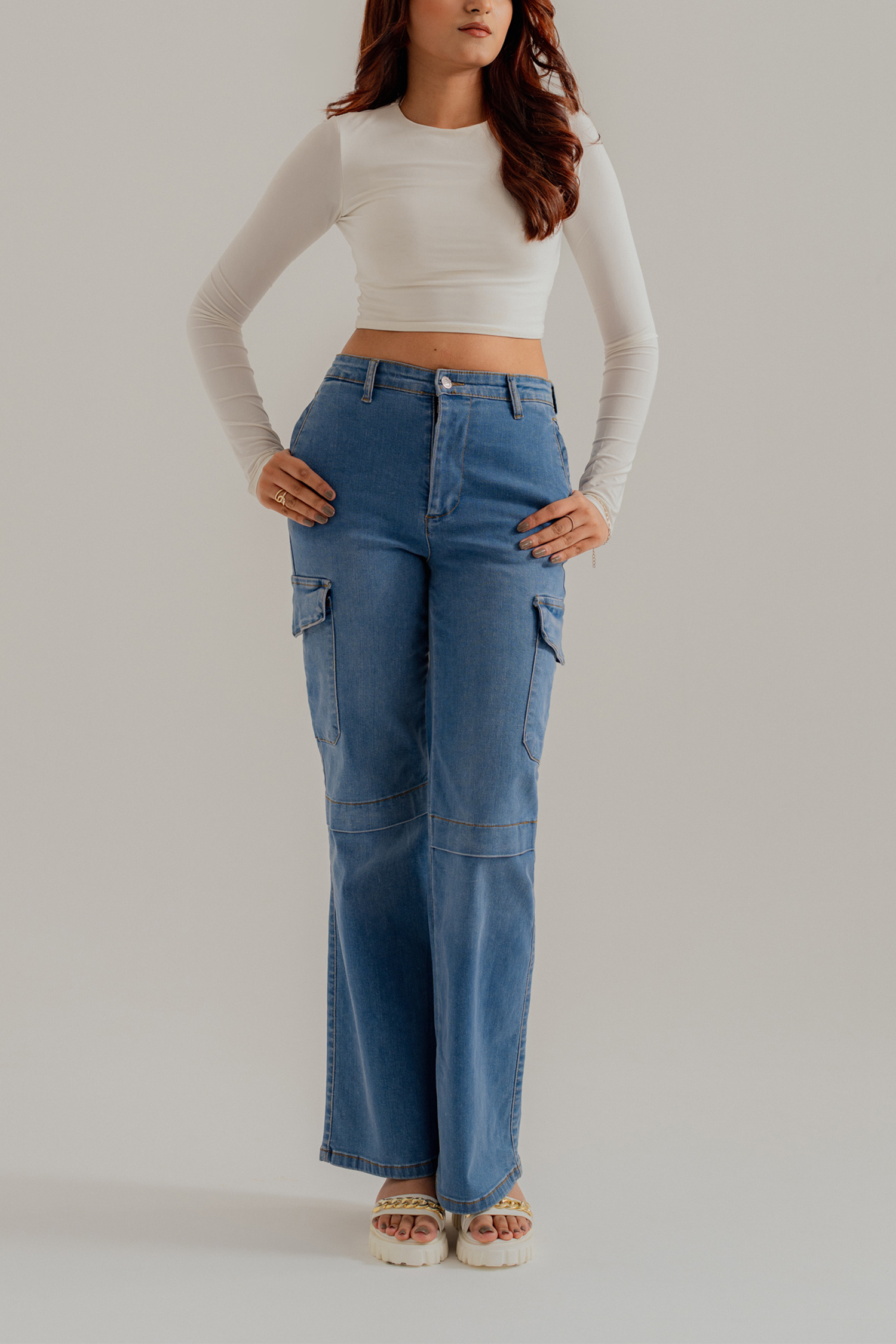 These mid-wash denim jeans feature a straight fit with subtle fading for a worn-in look. Designed with utility-inspired side pockets, they balance function and style. A versatile essential that pairs effortlessly with both casual and elevated streetwear fits.