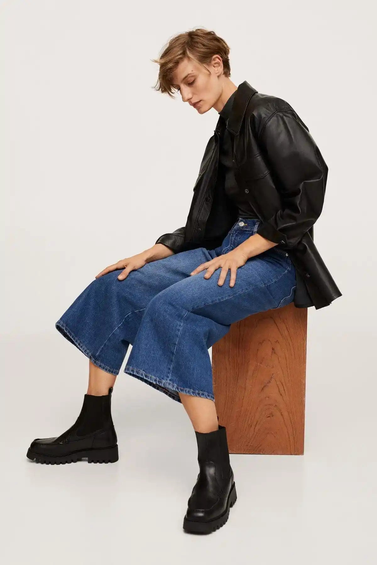 Committed Collection. 100% Cotton. Recycled cotton-blend fabric. Culotte design. High waist. Loops. Five pockets. Dart detail.