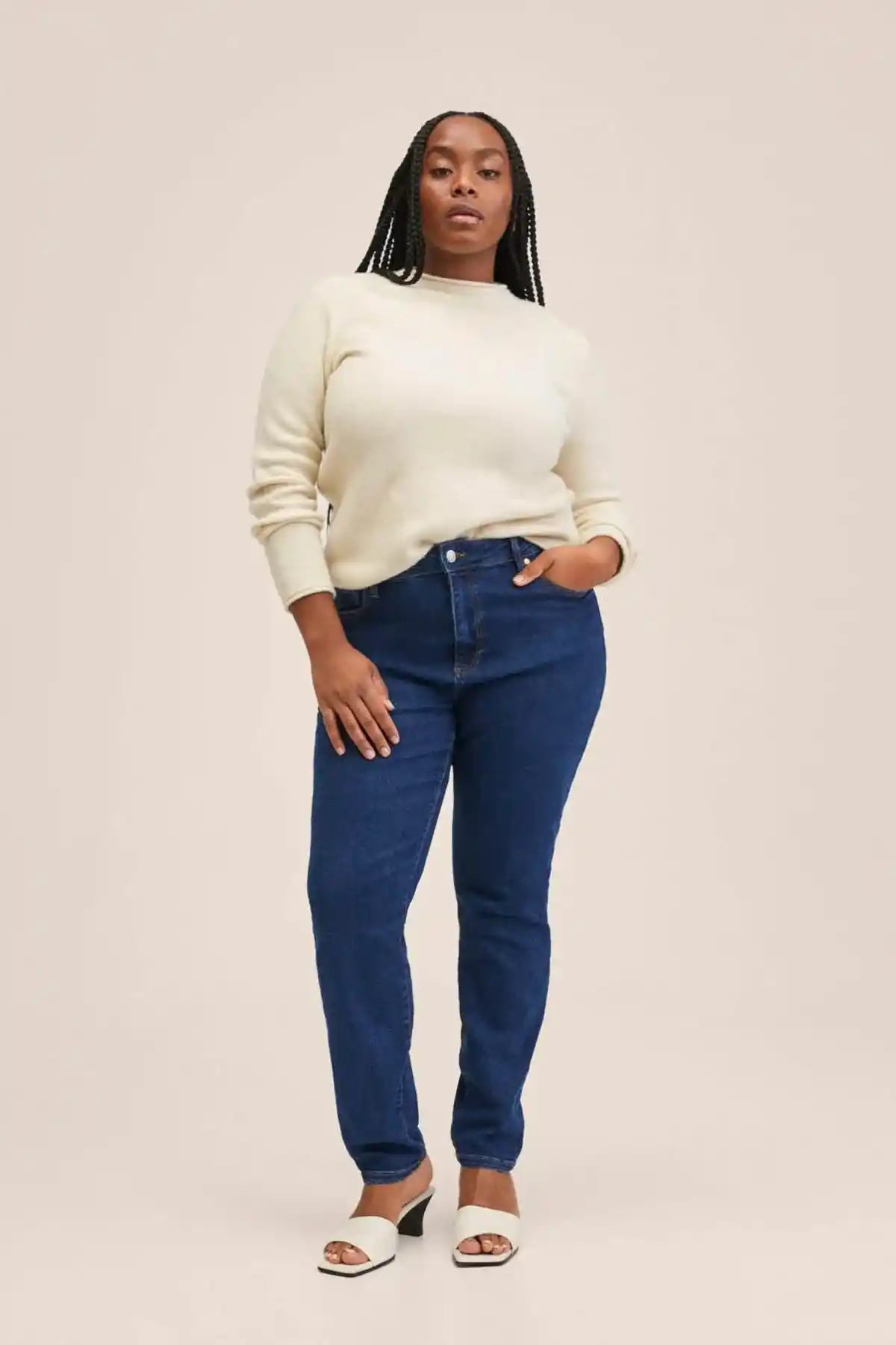 Committed Collection. Fabric with cotton. Elastic. Skinny fit. Long design. High waist. Loops. Five pockets. Zip and one button fastening. Plus Size Available.