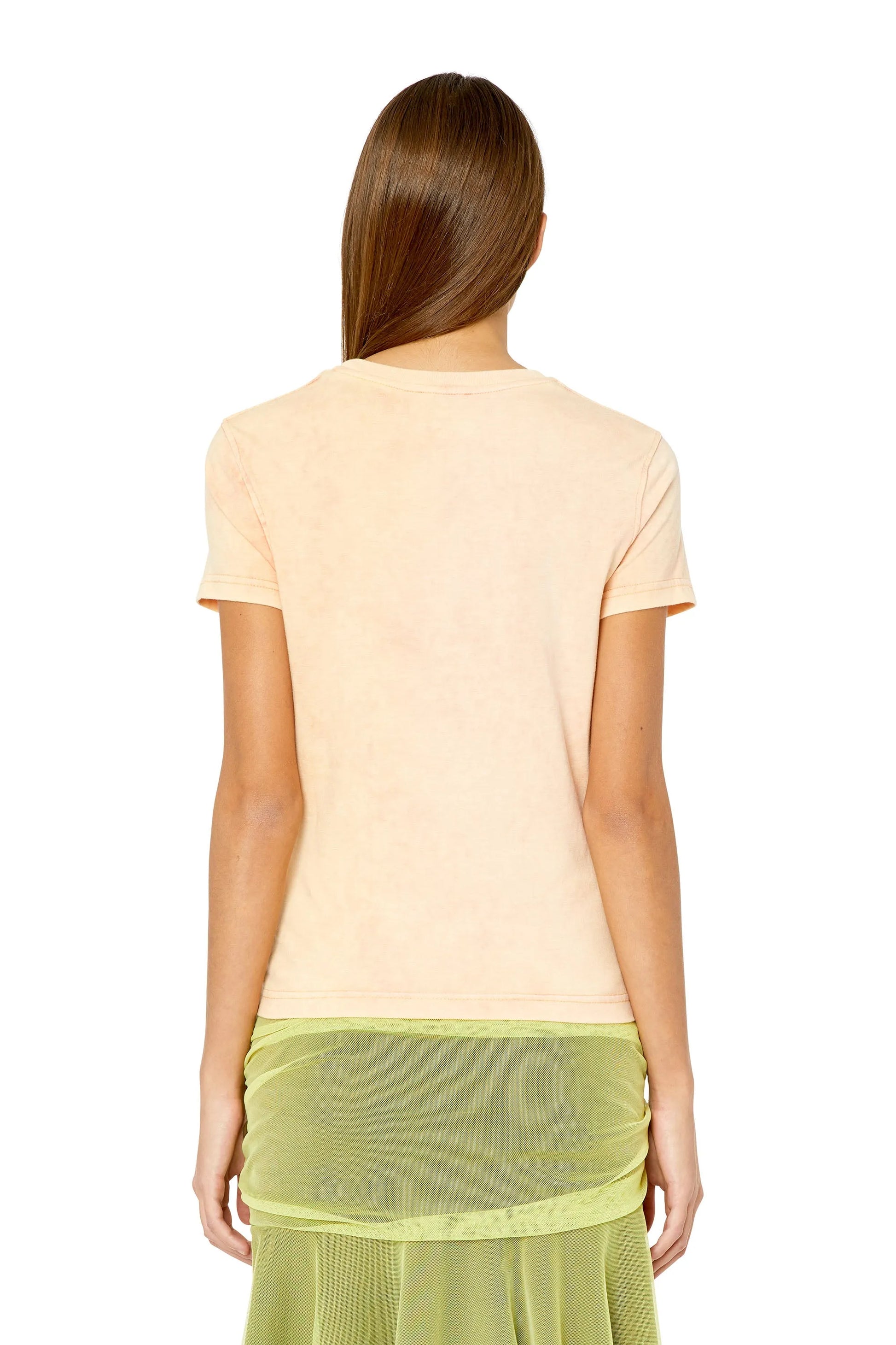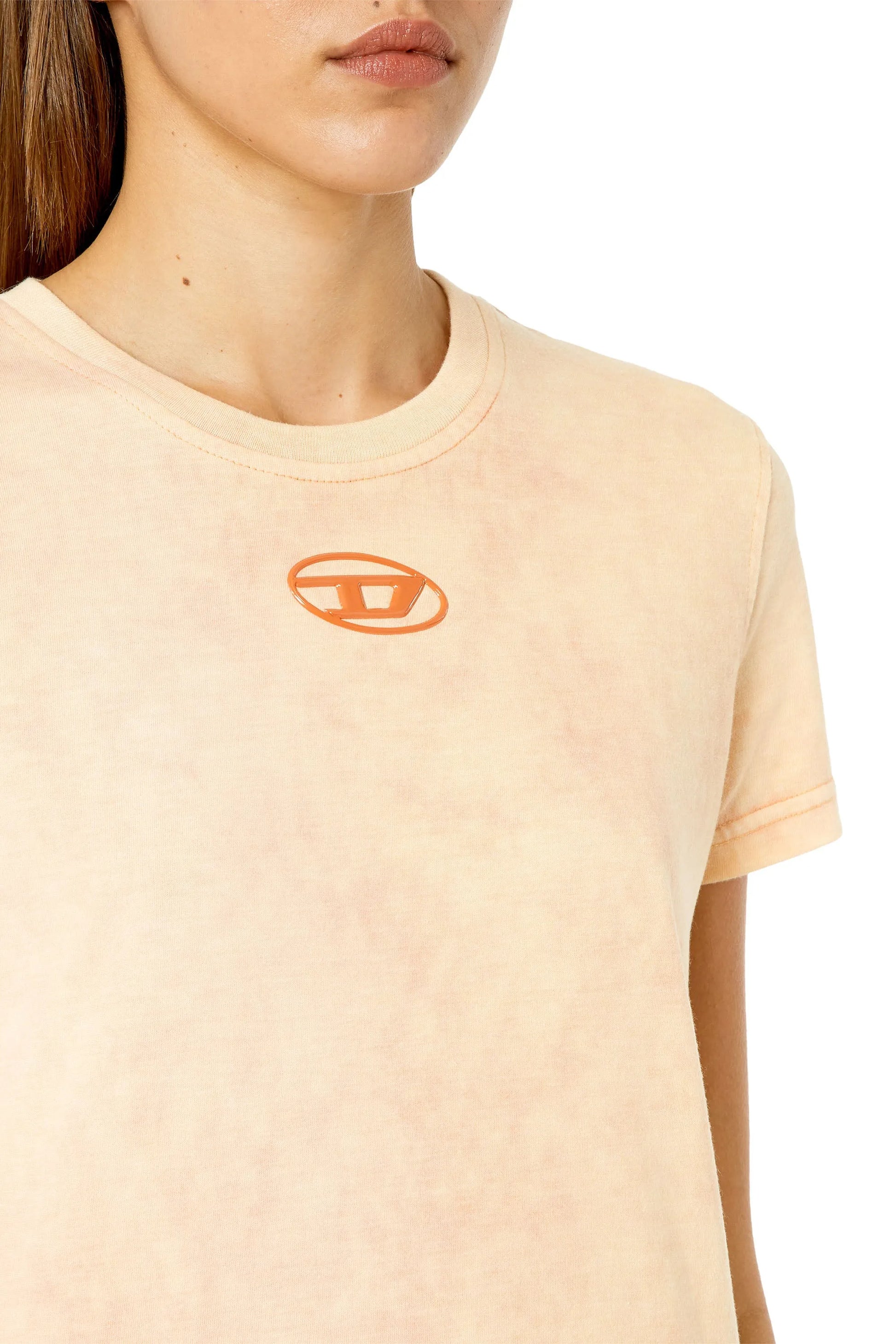 This women's fitted T-shirt has a washed-out hue and asymmetrical fading to appear naturally sun-bleached. Made from jersey blended with cotton, it showcases the 'oval D' emblem—this tonal version is made using an injection moulding technique.