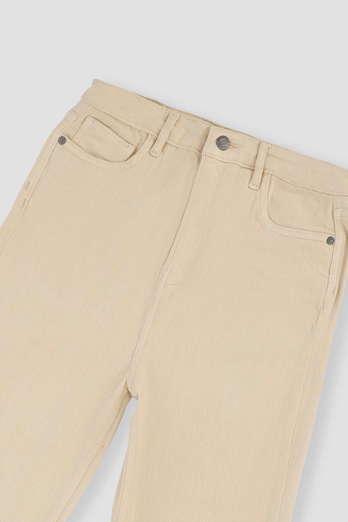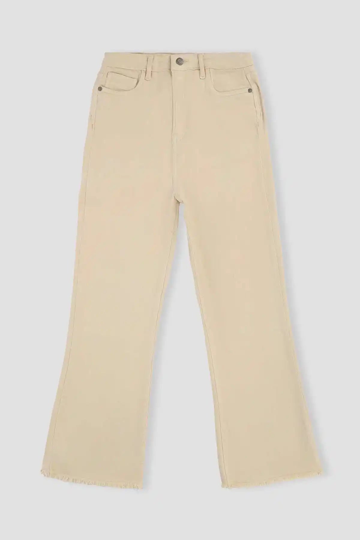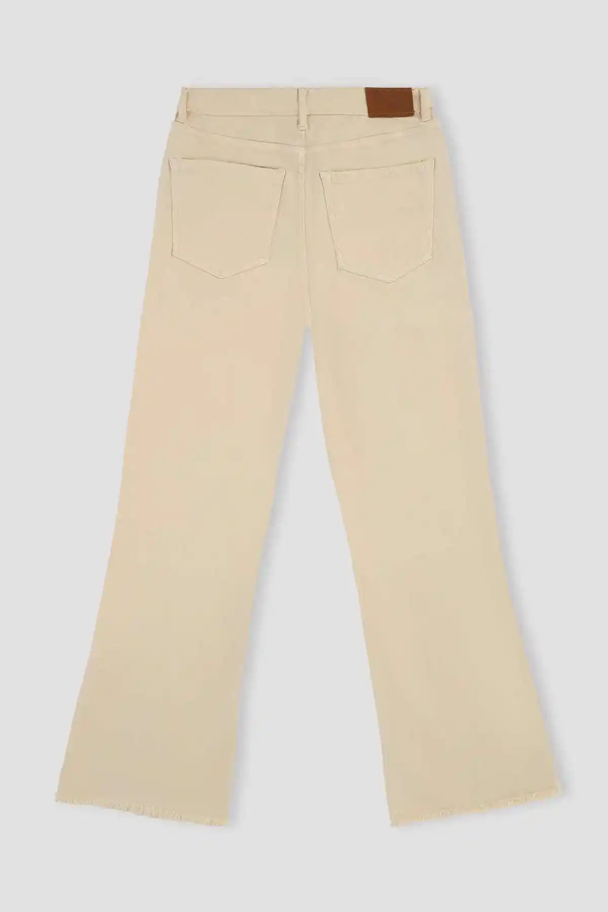 97% Cotton 3% Elastane. Regular Waistband With Button And Loops. Front Slash Pockets. Rear Welt Pockets With With Fringe Hem At Bottom End