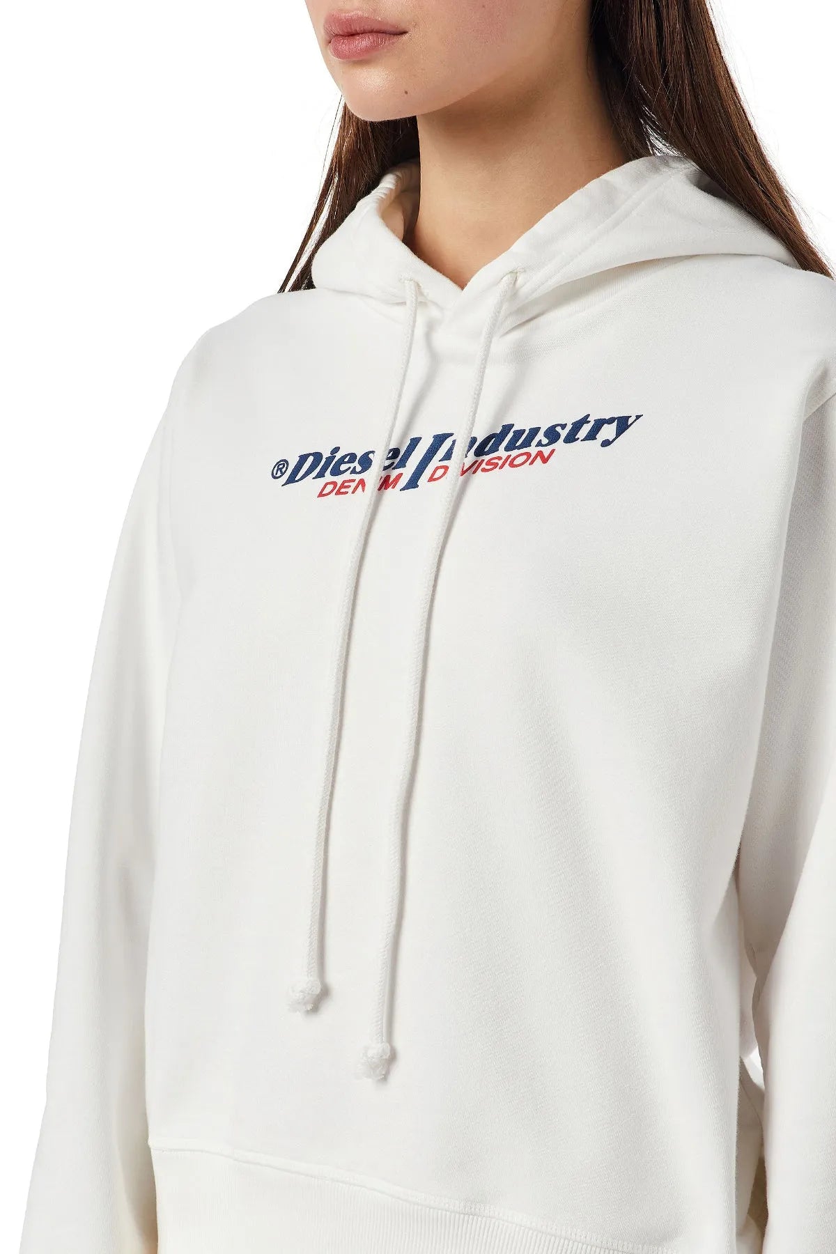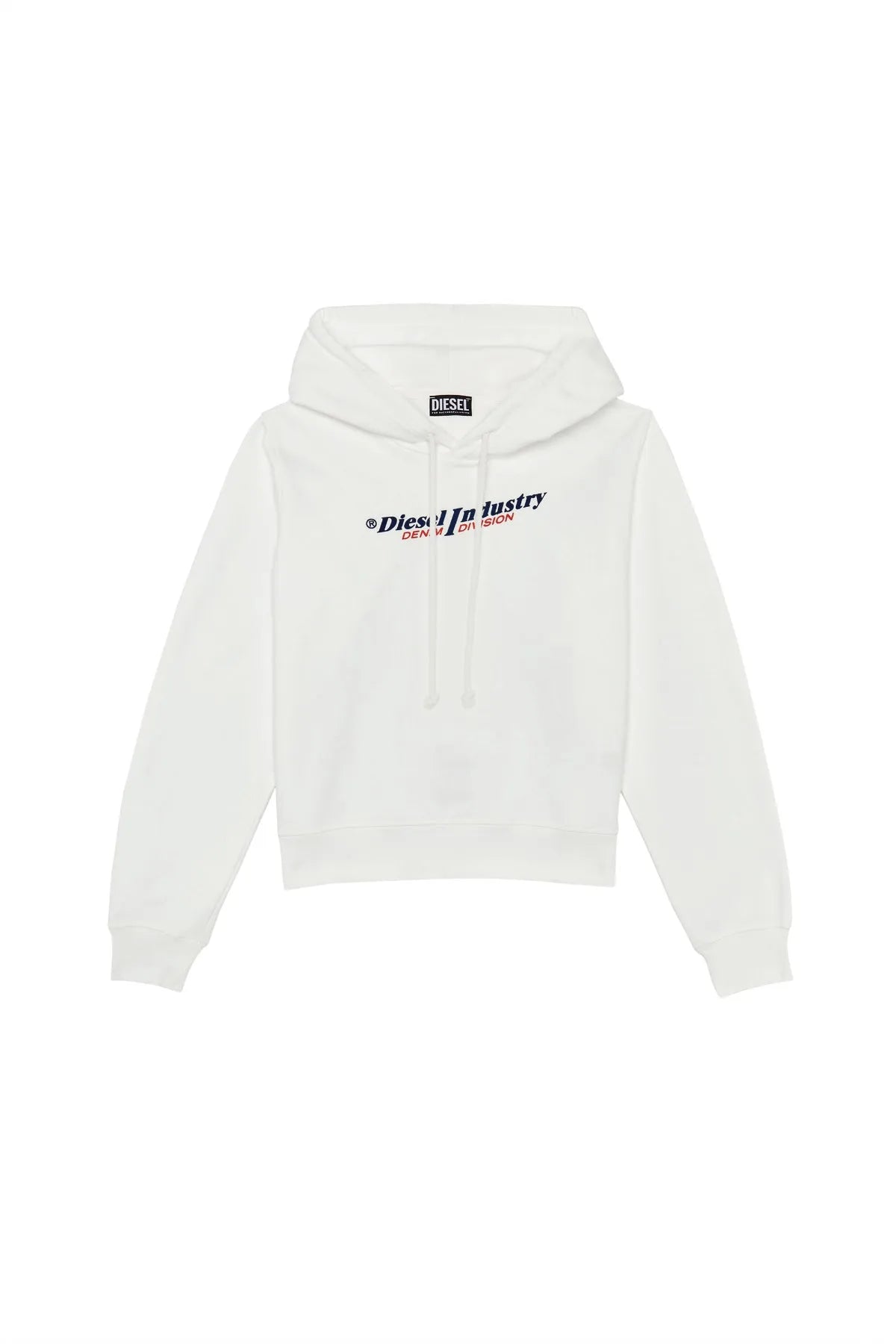 Pigment-dyed hoodie cut from loopback cotton for a regular fit, it features a treated vintage look and a puff-print Diesel Industry, Denim Division logo on the front.