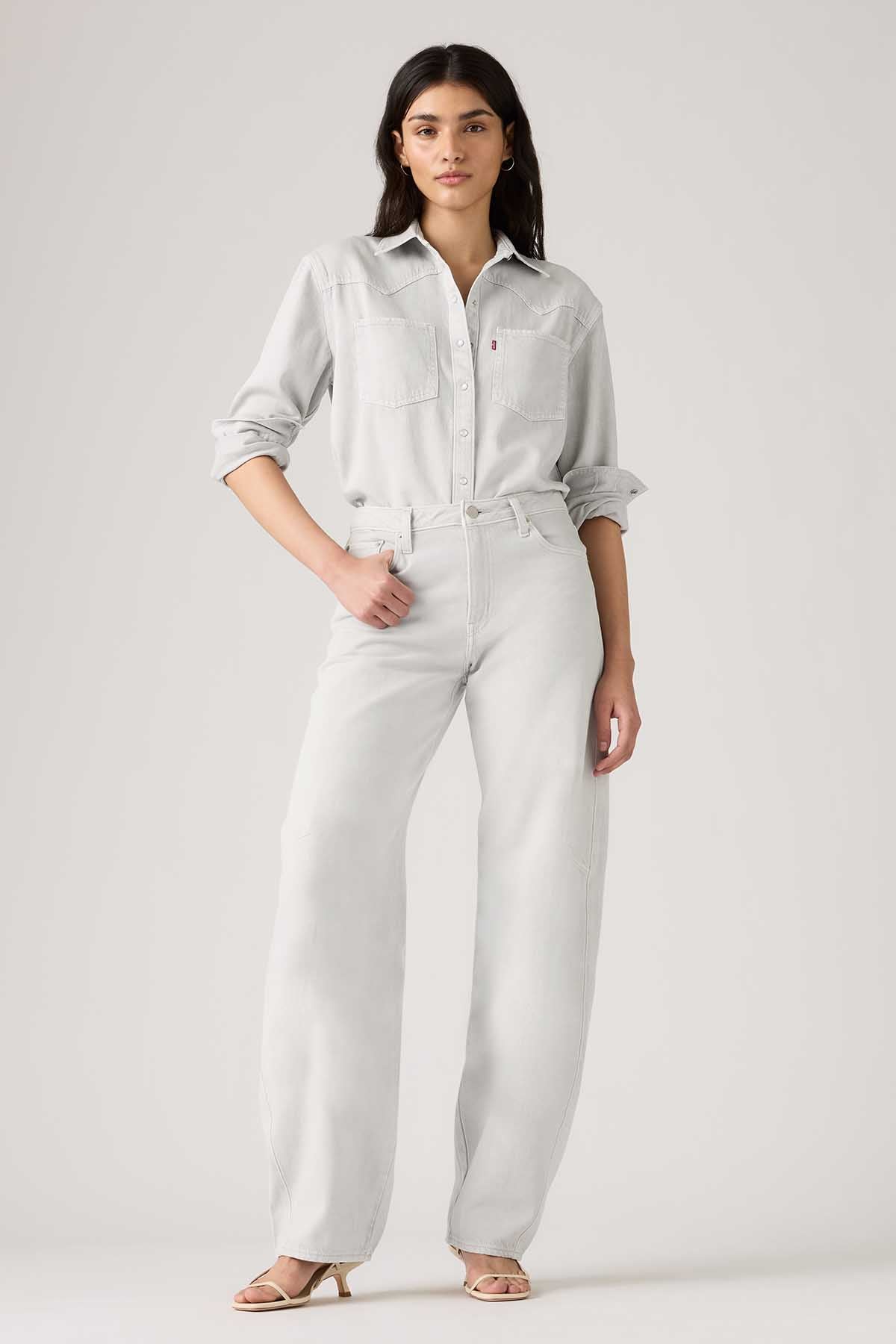 The curved leg is here to stay. With a mid rise and a loose fit, our baggy dad barrel jeans are relaxed yet flattering with extra room for a subtle edge.