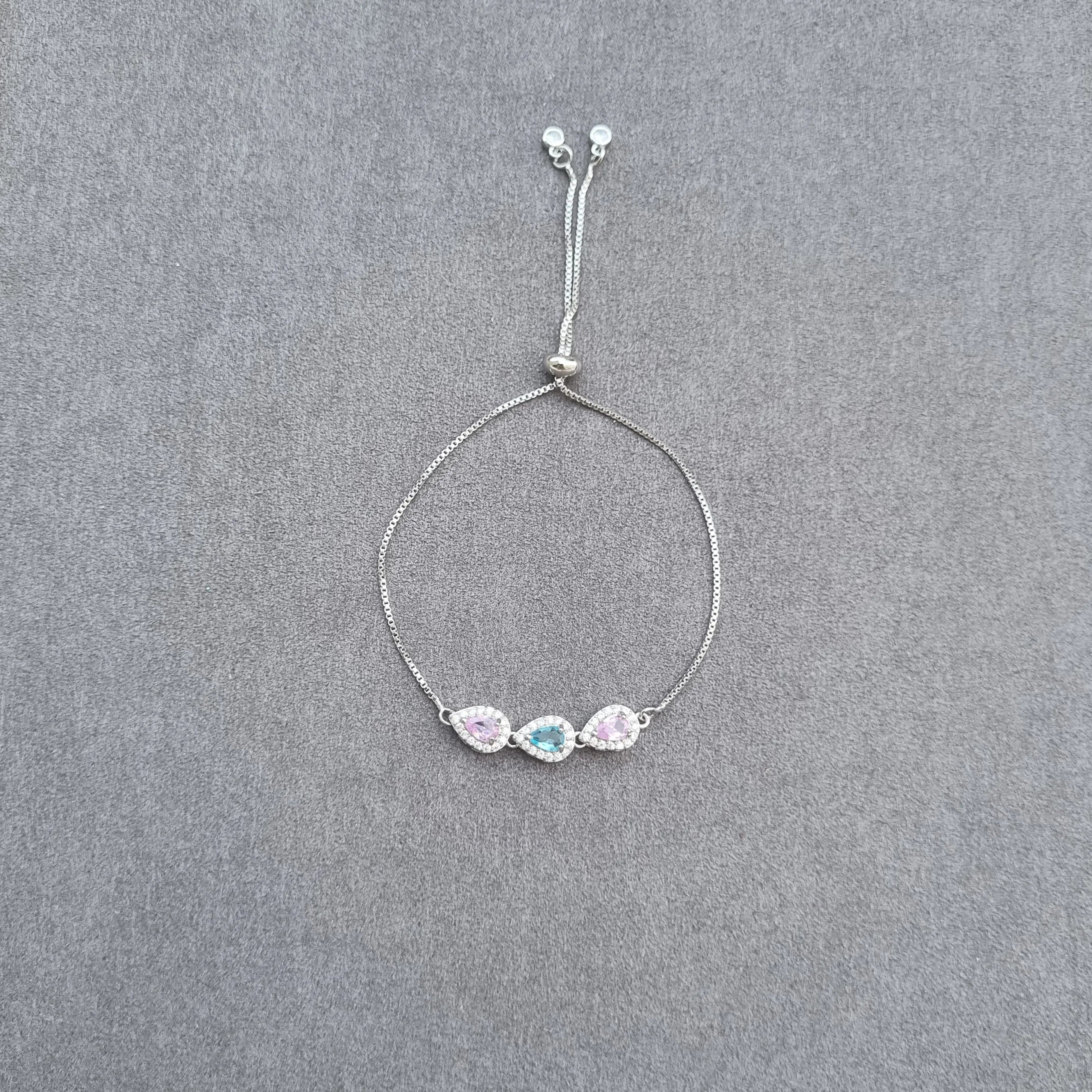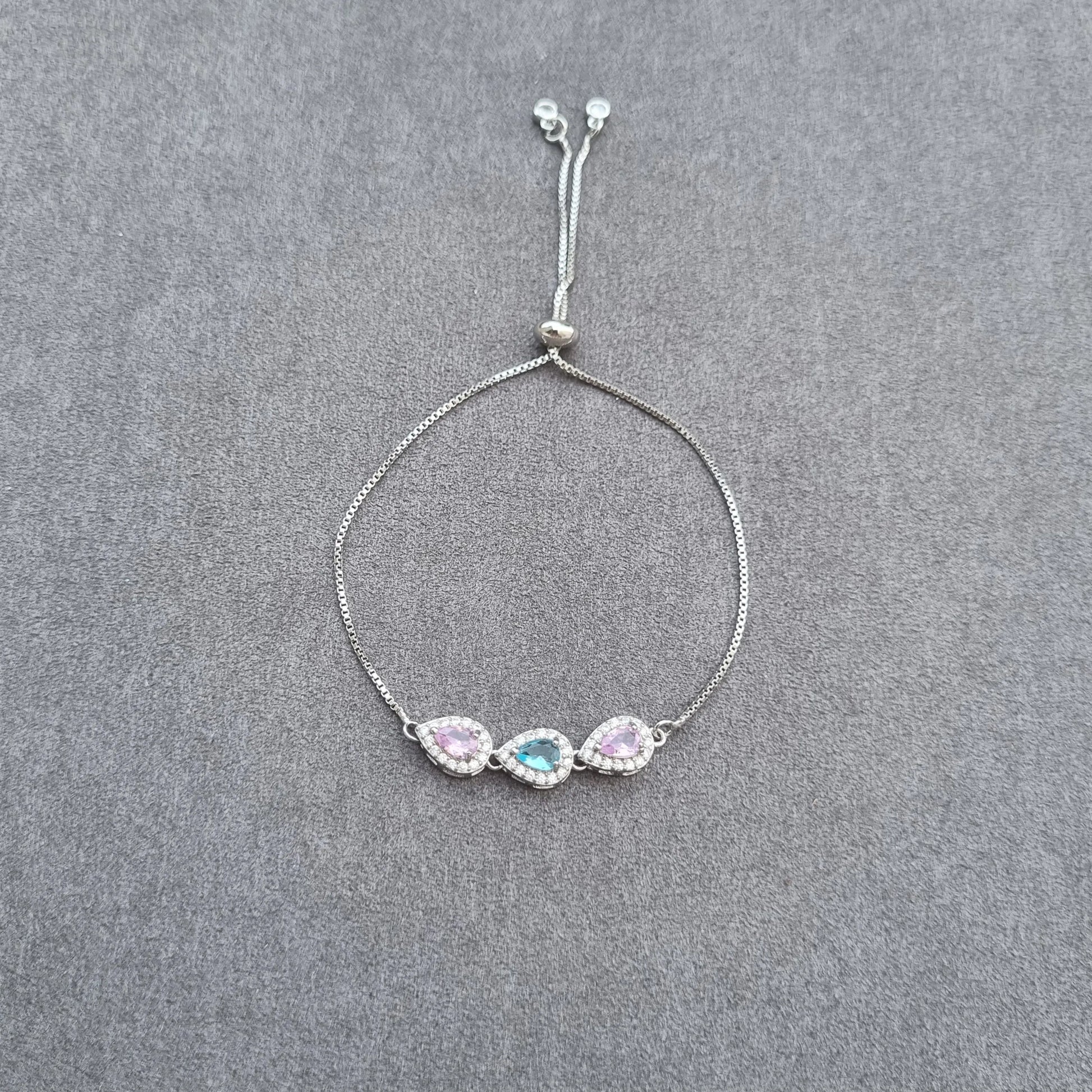 This handmade bracelet features a vibrant mix of multicolored zircon stones set on a silver base, offering both elegance and versatility. Its adjustable design ensures a comfortable fit for all wrist sizes, making it a thoughtful accessory that complements any outfit with a touch of sparkle.