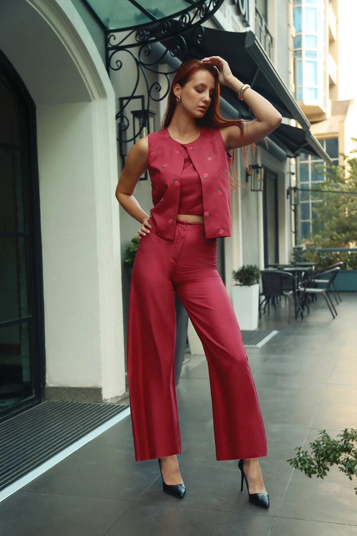 Elevate your wardrobe with this bold and versatile berry-toned silk co-ord set. Designed for the modern woman who values comfort without compromising on style, this set features: