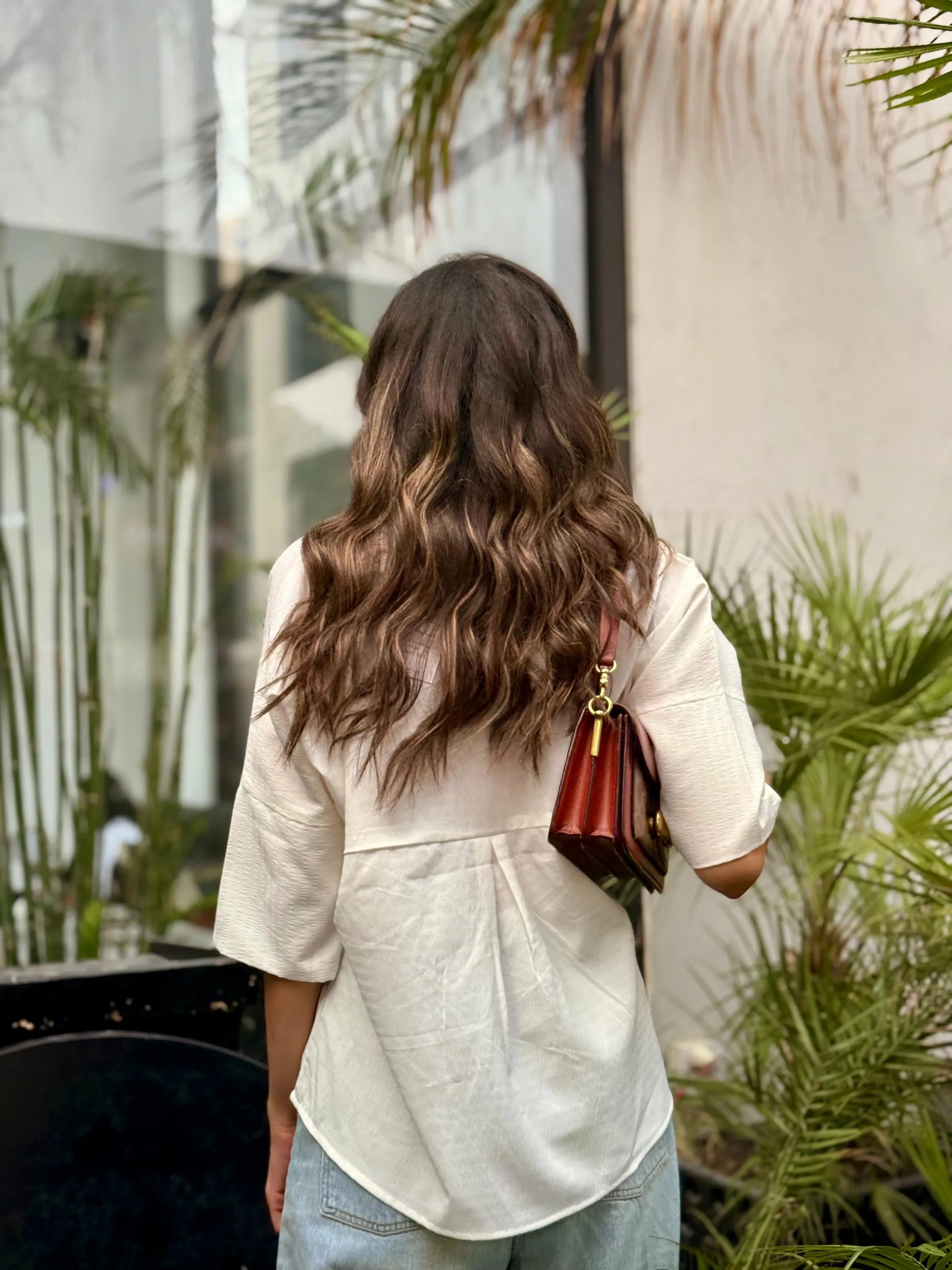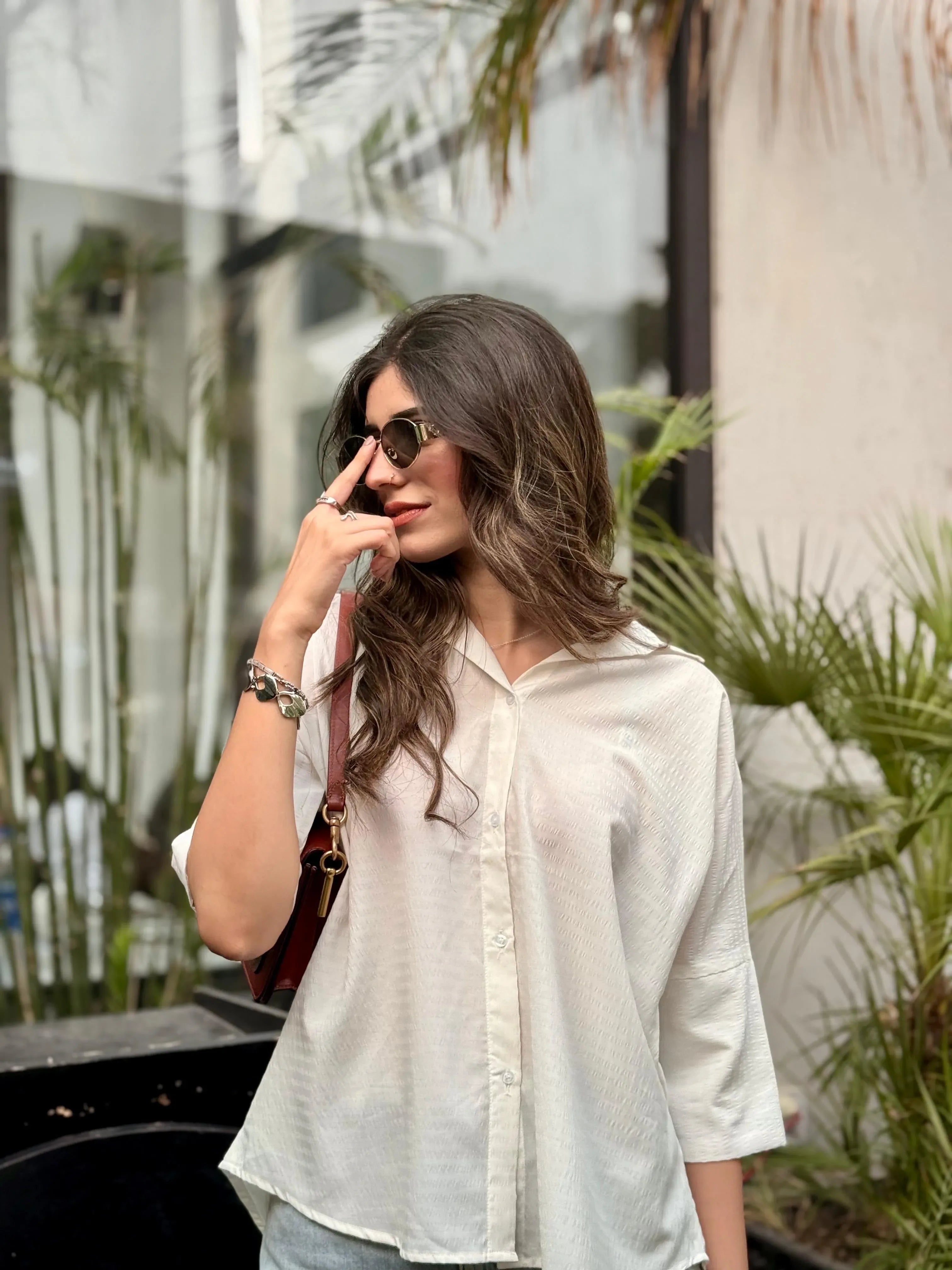 Clean And Contemporary, The Off White Boxy Button Down Top Offers A Relaxed Fit With Effortless Style For Everyday Summer Looks.