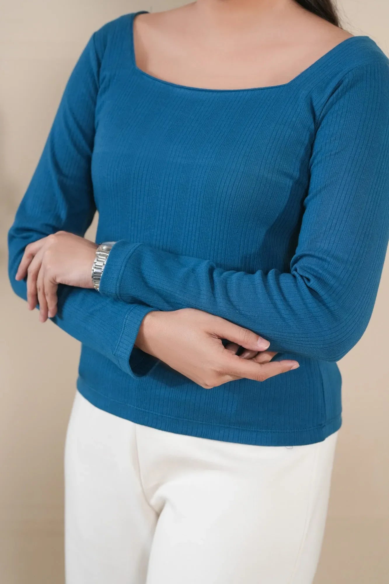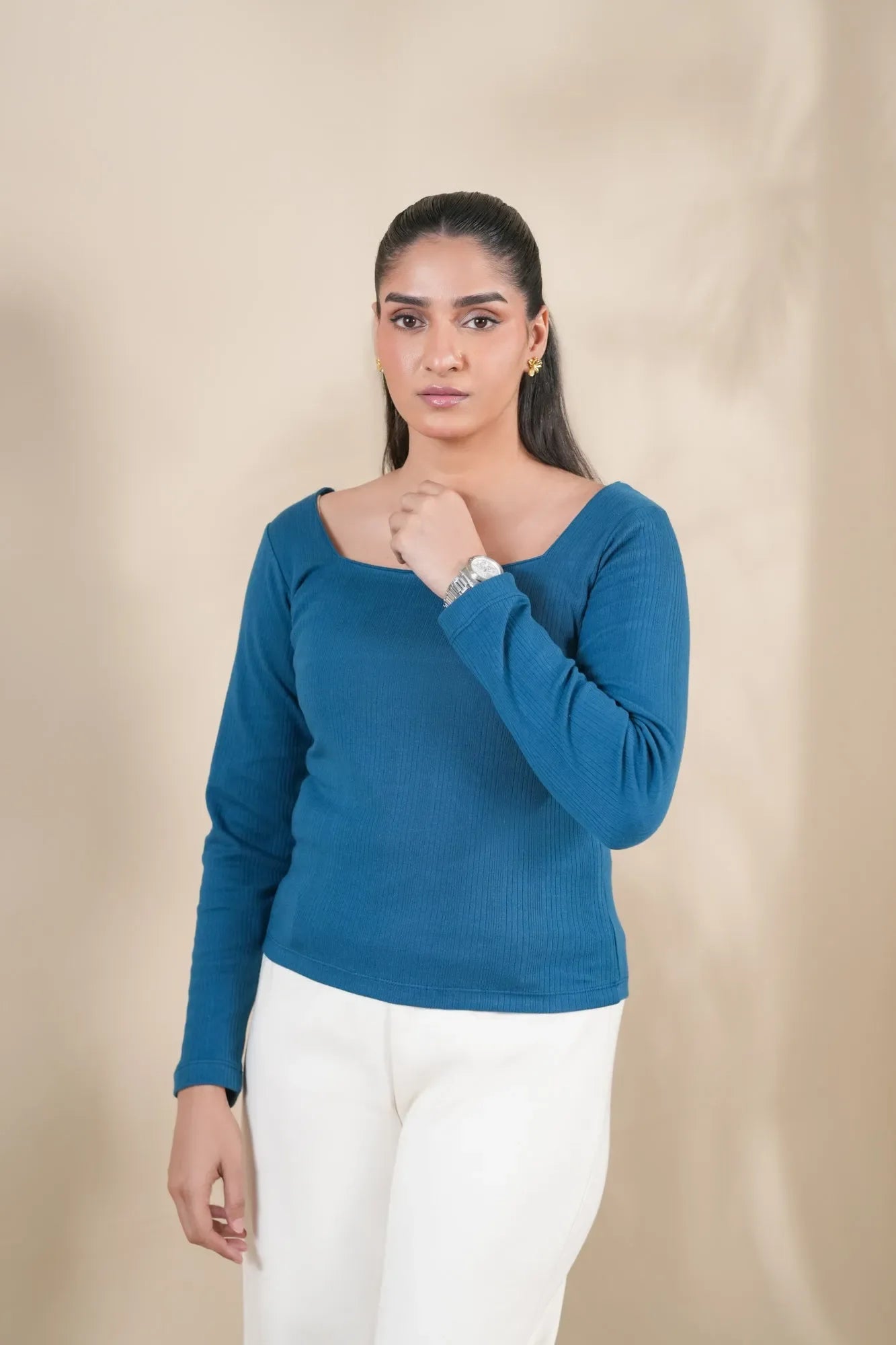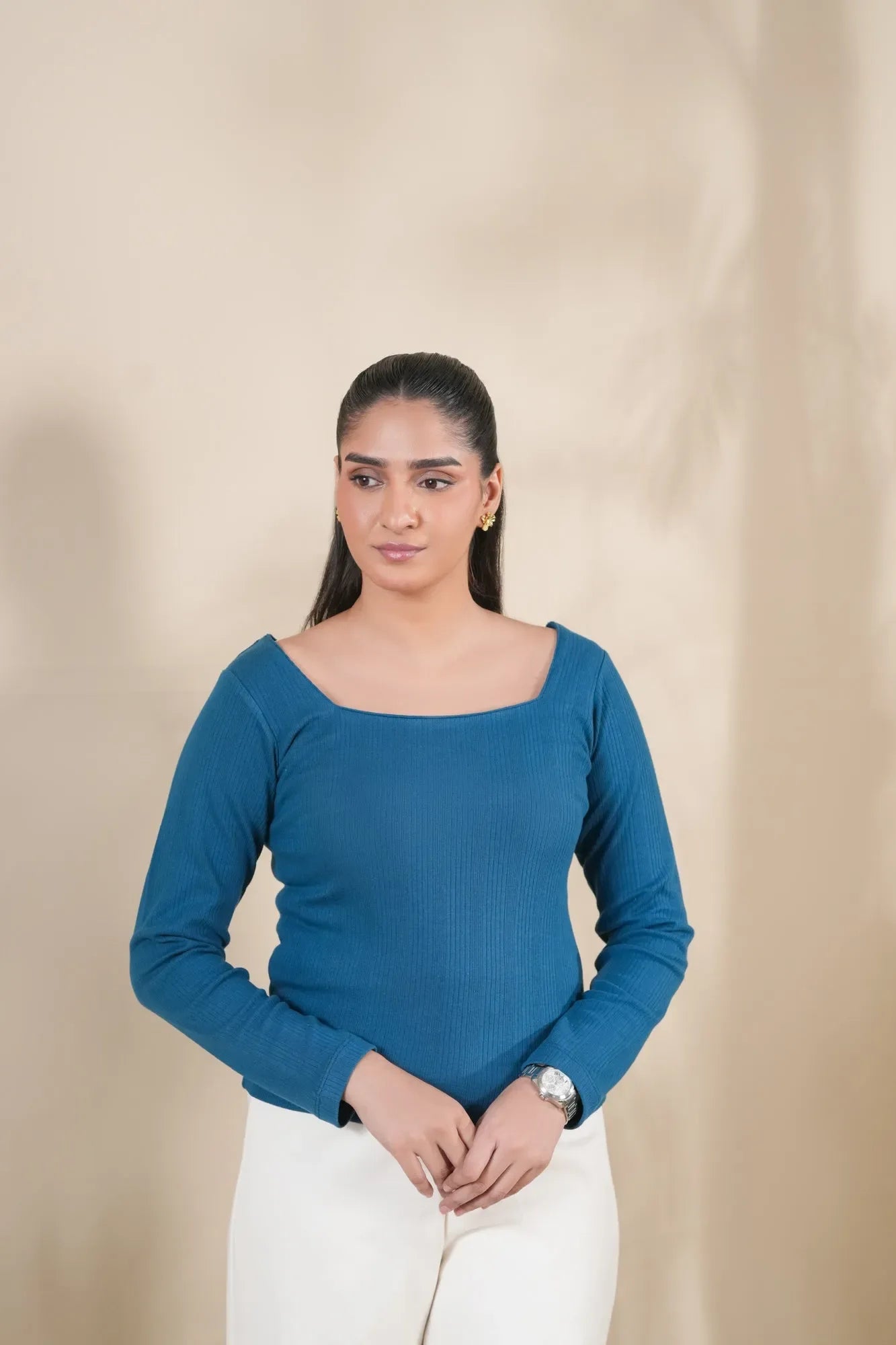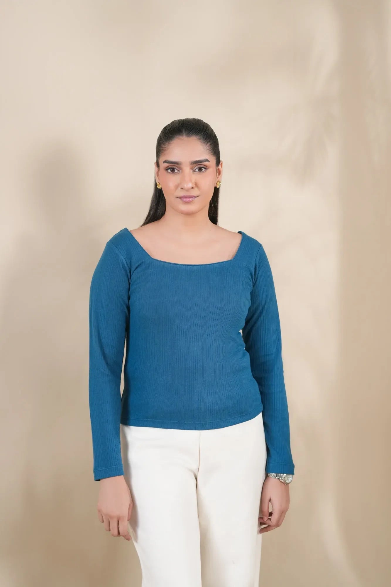 Drop Needle Knit Top In Zinc Grey Featuring A Square Neckline And Slim Fit Silhouette. Soft, Stretchable Fabric For Effortless Everyday Elegance