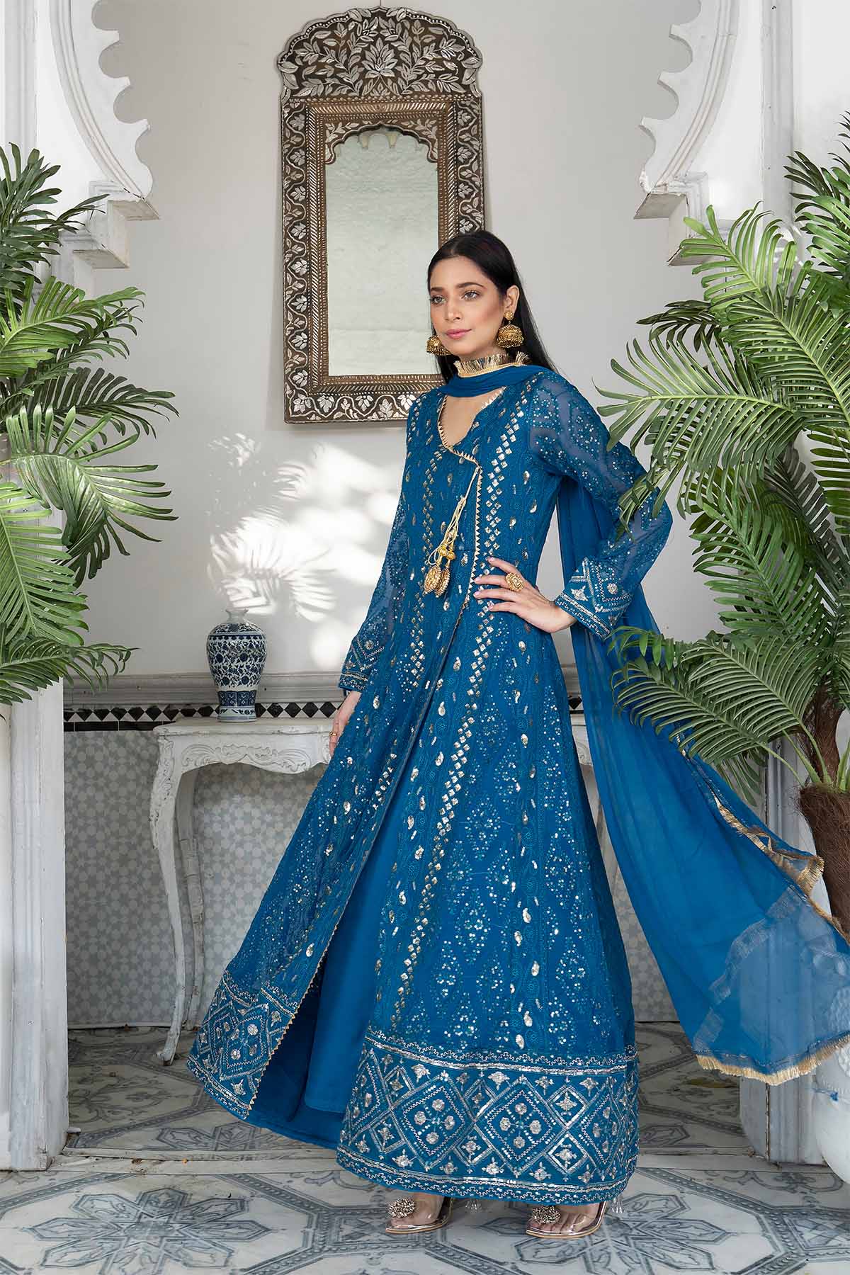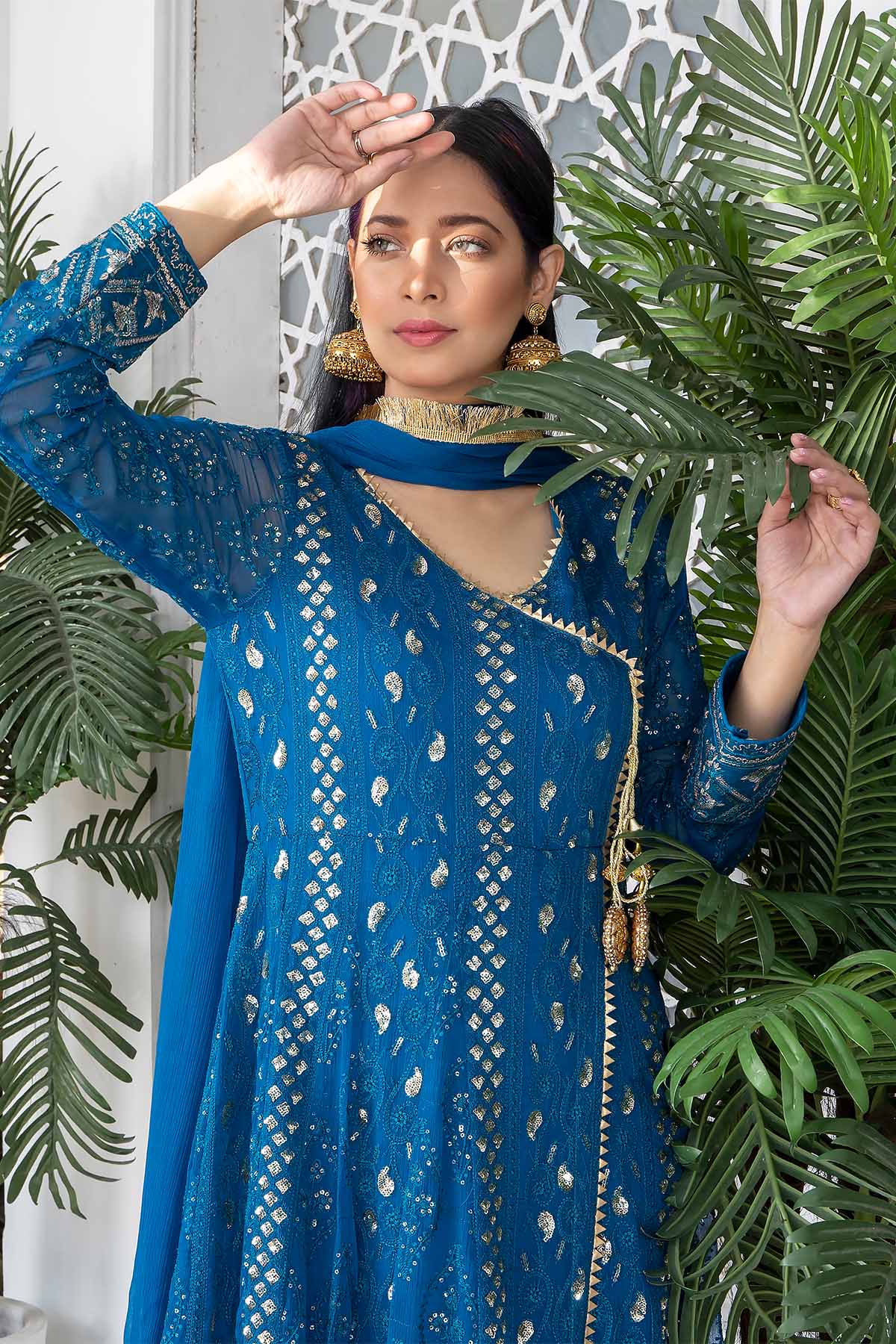 daytime and evening events. This magnificent shirt is worn with a plain chiffon dupatta bordered with kiran