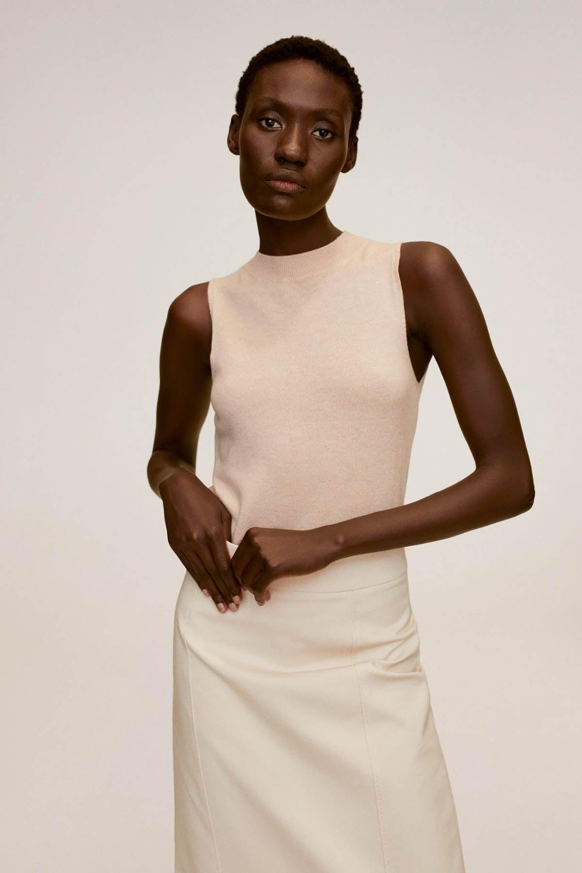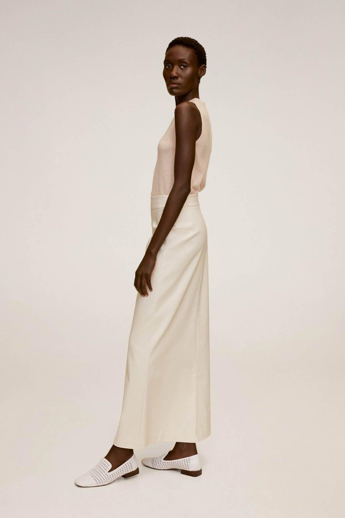 Cotton fabric. Flared design. Two side pockets. Loops. Zip and one button fastening.