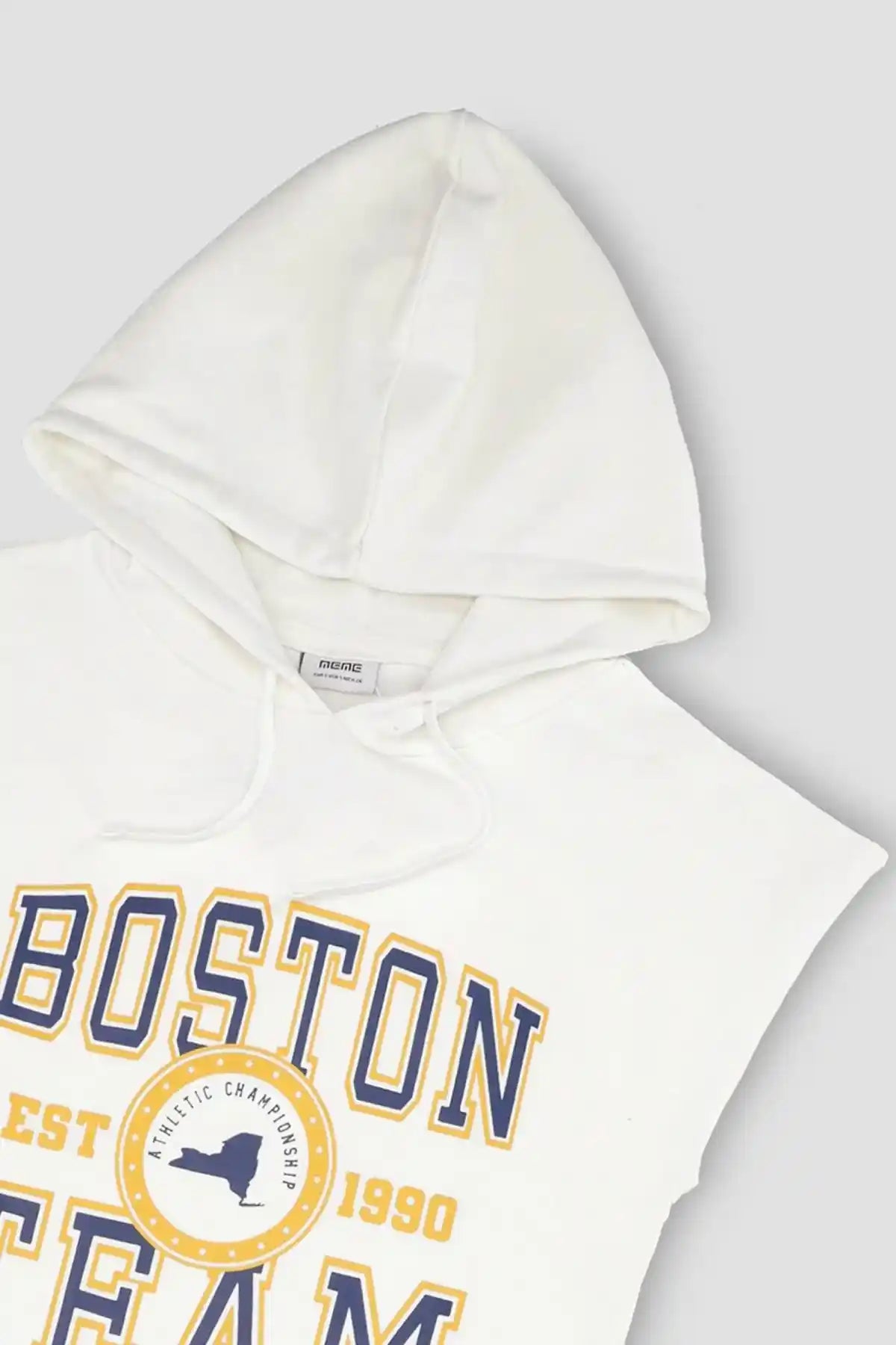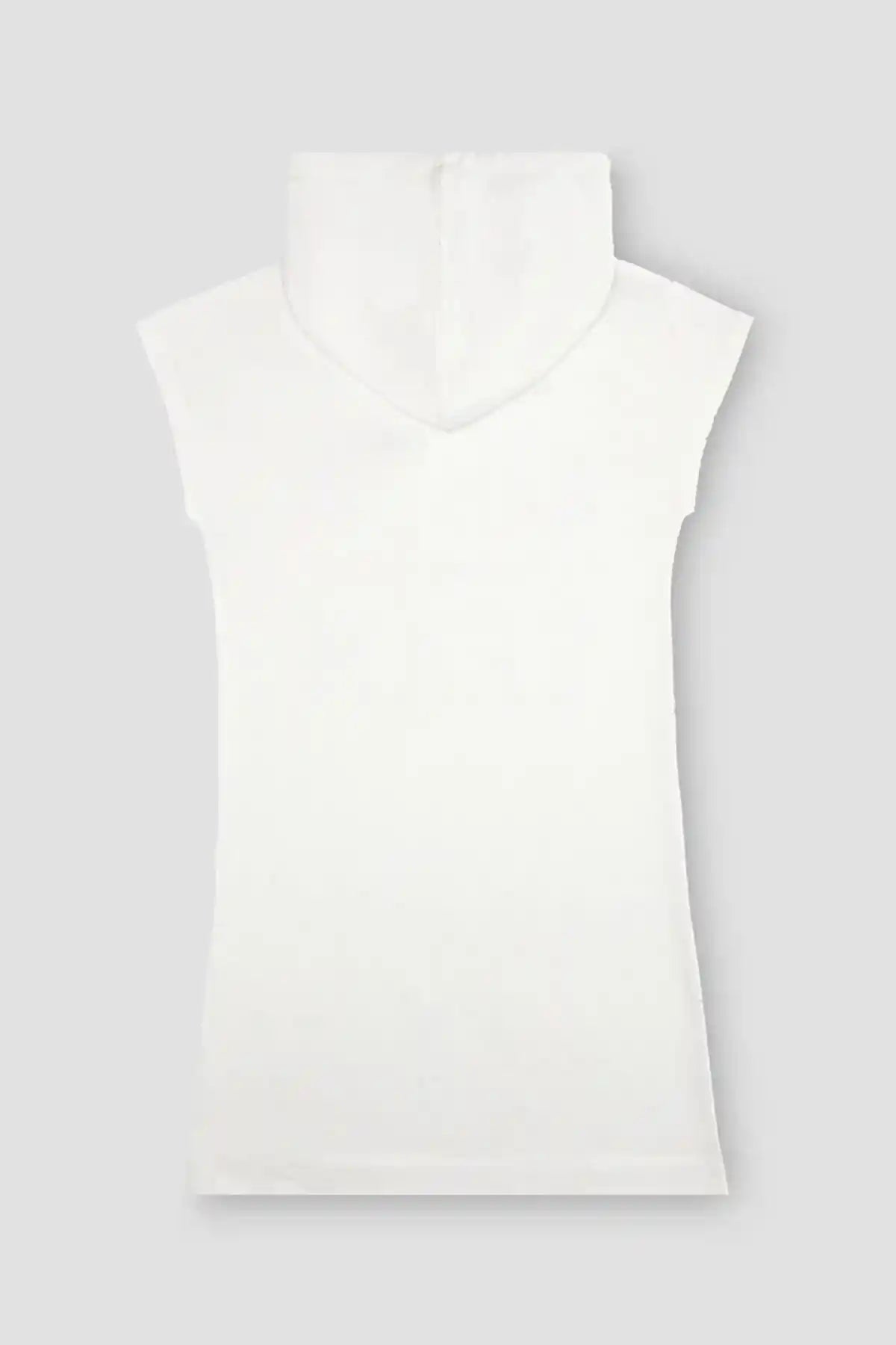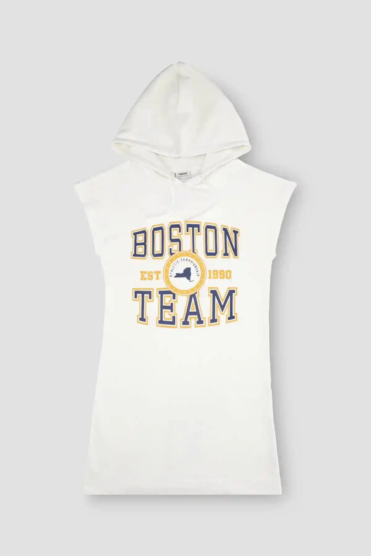 80% Cotton &Amp; 20% Polyester. Cozy And Comfortable Neutral Front Closed Hoodie Dress With Self Drawstring And Hood. Front Typography.