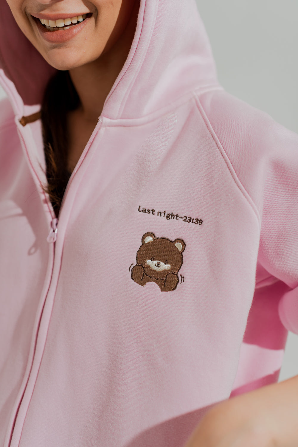 Pink Relaxed Fit Embroidered Zipper Hoodie