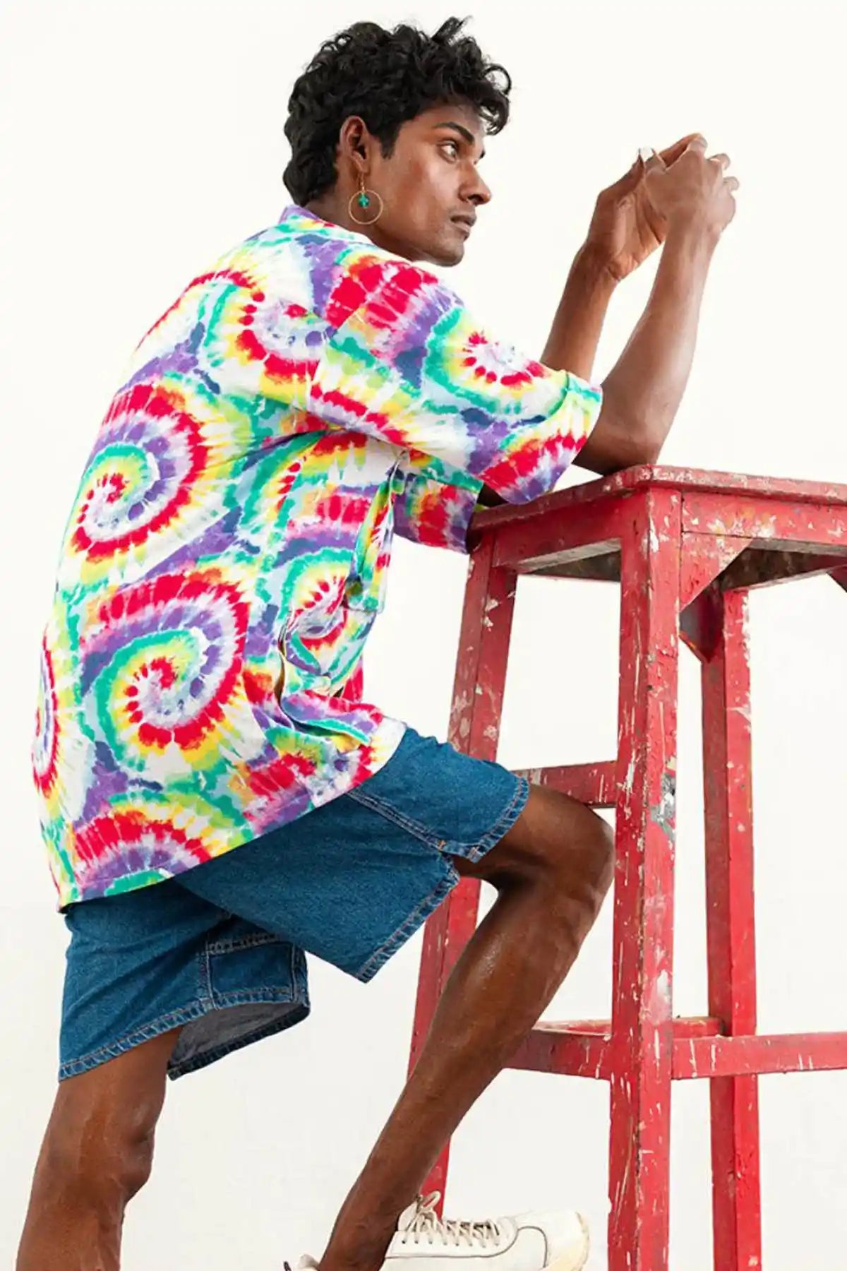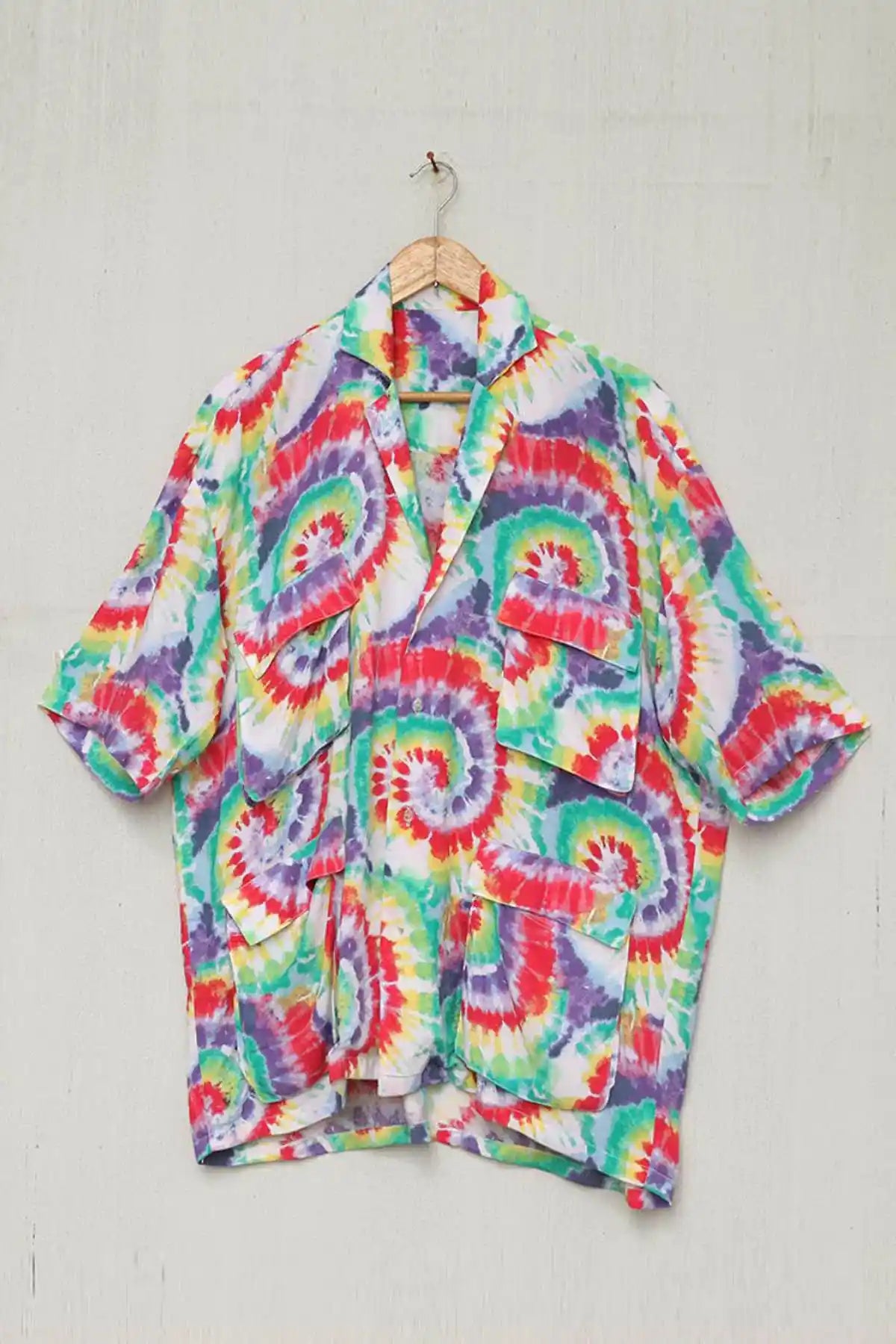 If you know, you know Go on trips and be a literal star with our Star Boy boxy, Cuban, printed shirt that is all personality. This shirt features a tie and dye aesthetic, funky colors and a silhouette that is relaxing and comfortable. Size Chart: Shoulder: 23, Chest: 25, Length: 30, Sleeves: 11.