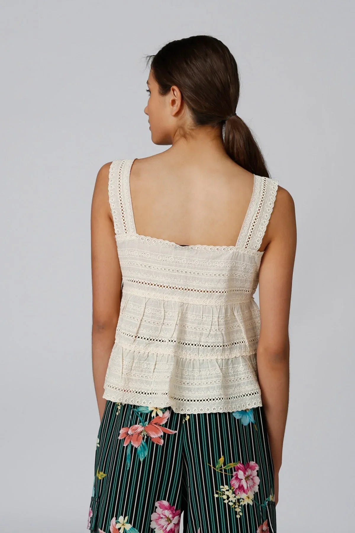 Textured Sleeveless Top with Schiffli Detail