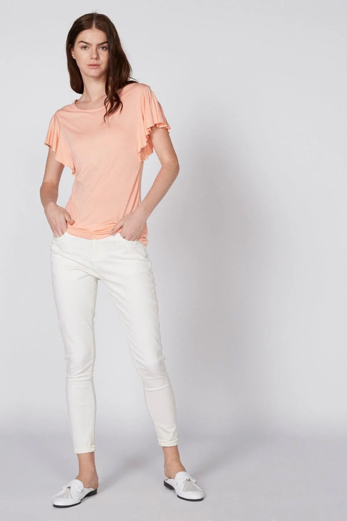 Round Neck Top with Frill Sleeves