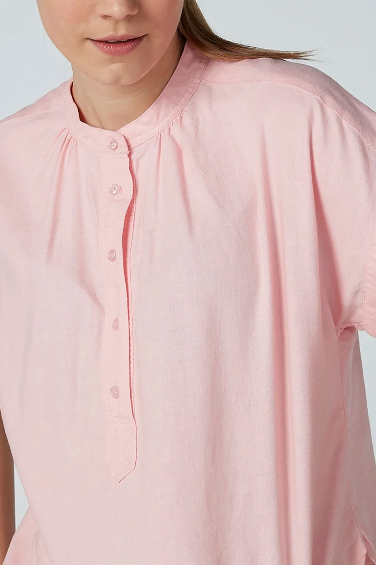 Plain Top with Henley Neck and Cap Sleeves
