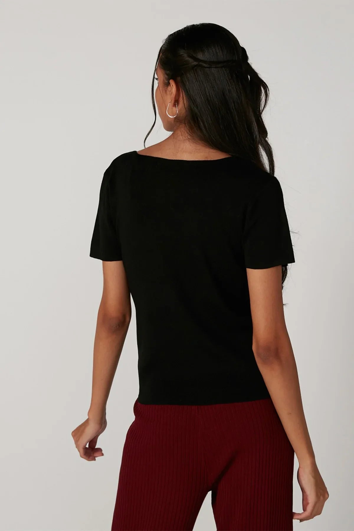 Textured Top with Short Sleeves and Button Detail