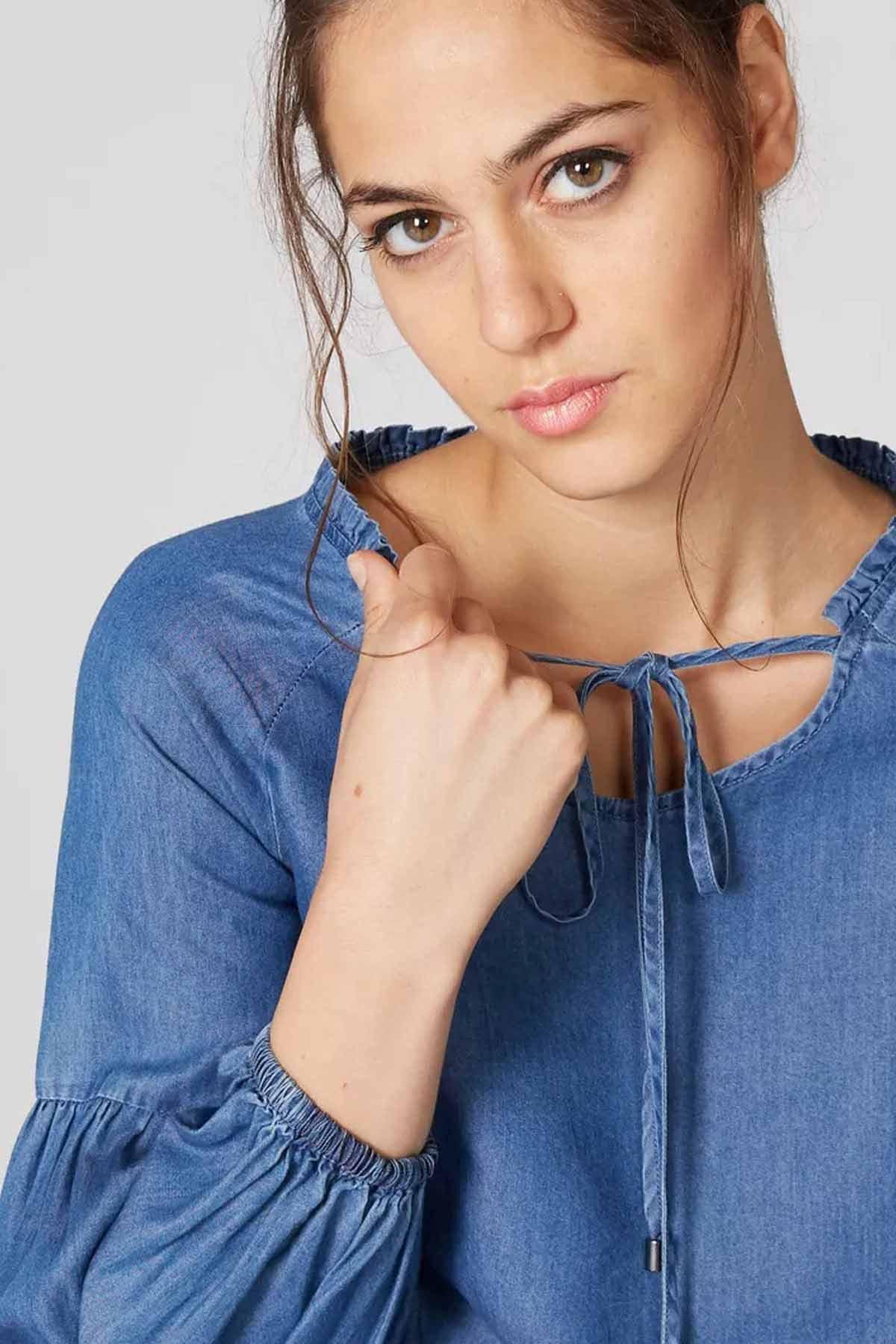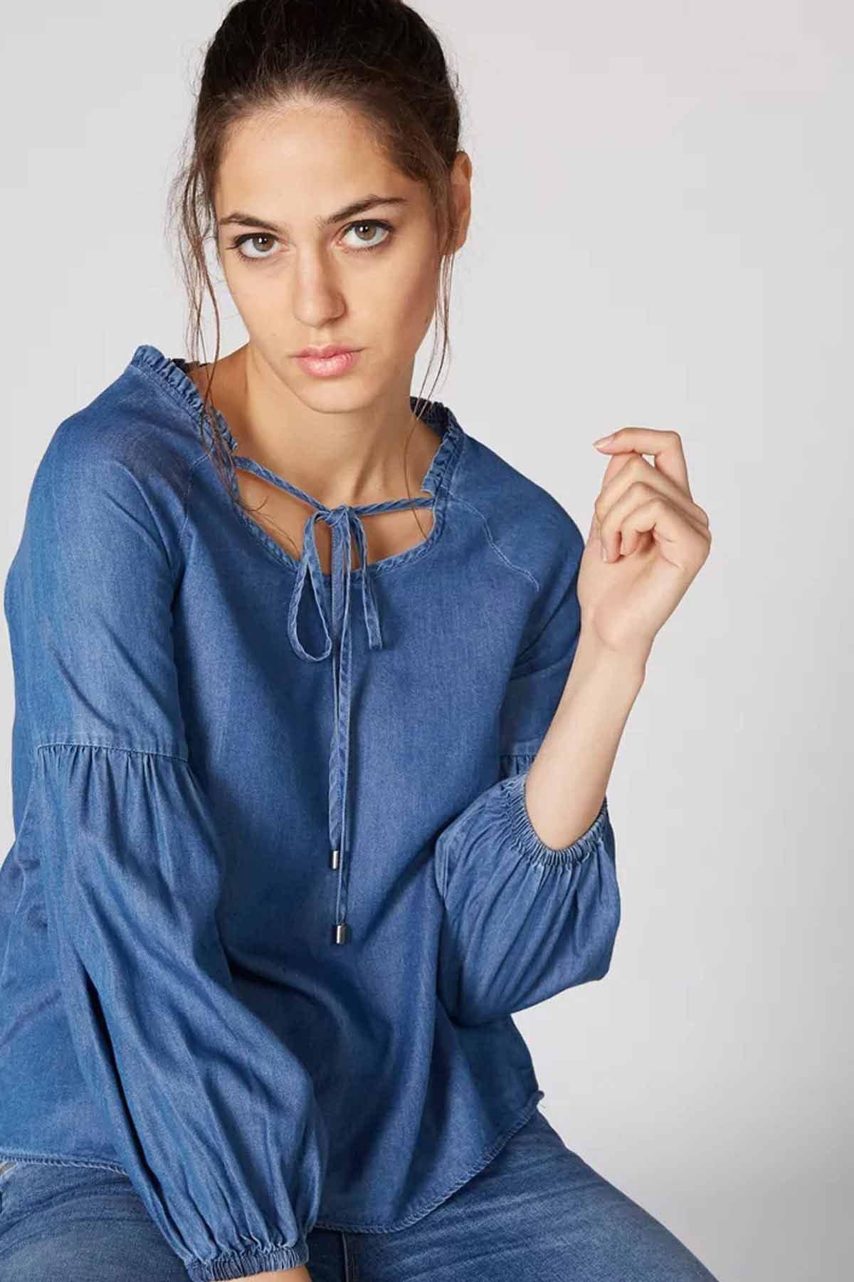 Denim Top With Ruffle Detail And Tie Ups