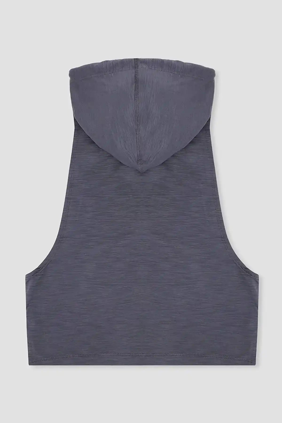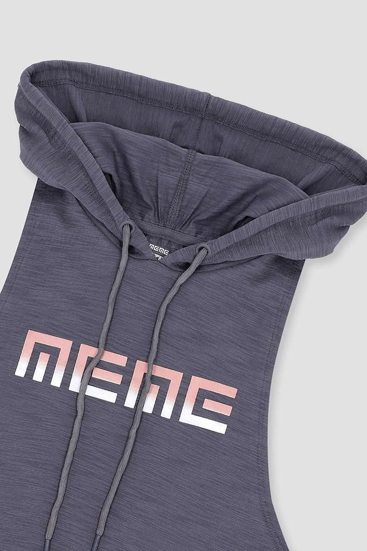 60% Cotton 40% Polyester. High Quality Single Jersey Vest Featuring Hood With Drawstring. Front Logo Print Detail
