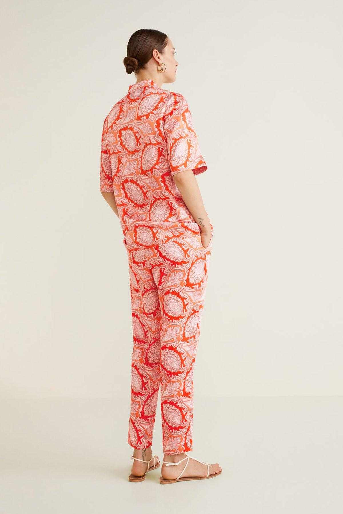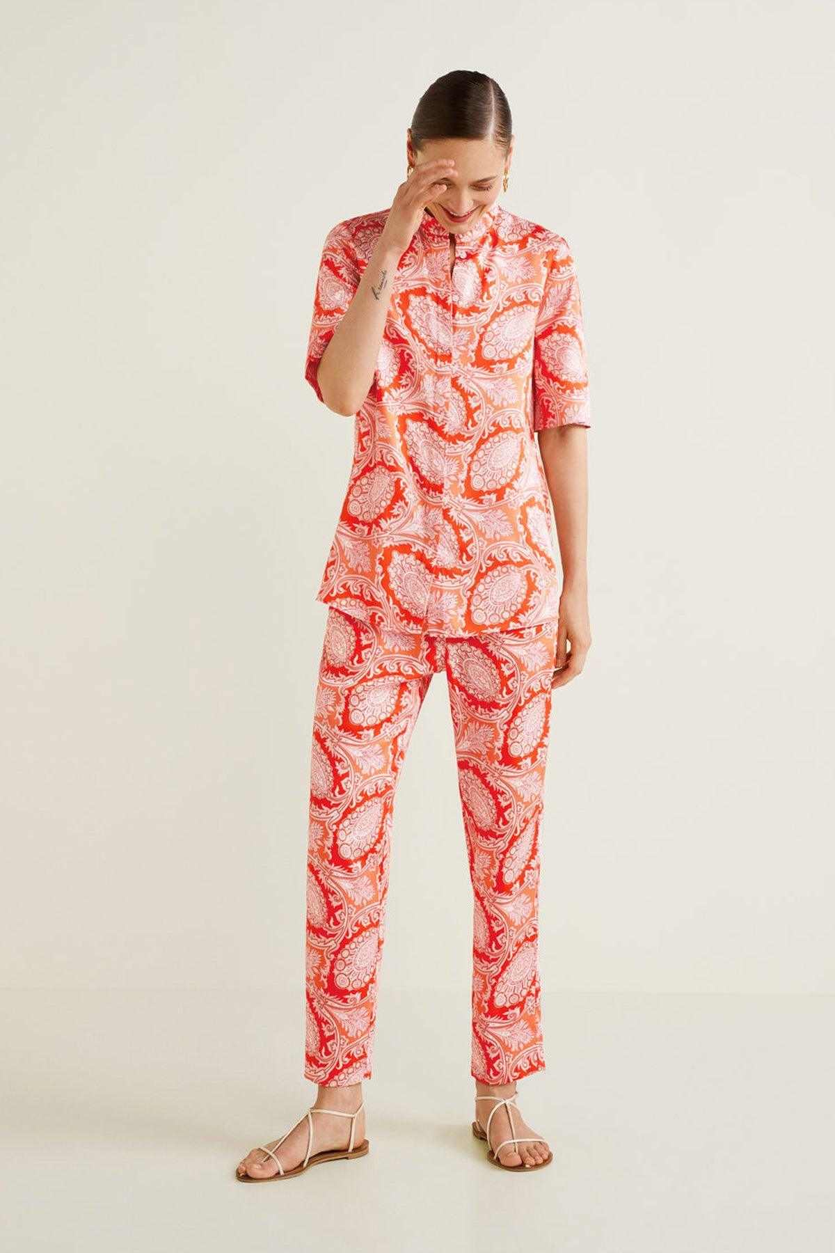 Straight design. Flowy fabric. Paisley print. Elastic waist. Side pockets.