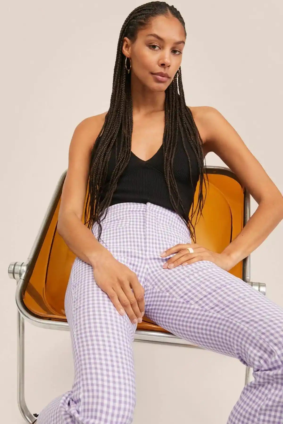 Committed Collection. Recycled polyester blend fabric. Bootcut design. Cropped design. Medium waist. Decorative pockets on the front. Concealed button, hook and zip fastening. Available in plain and patterned. Plus Size Available.