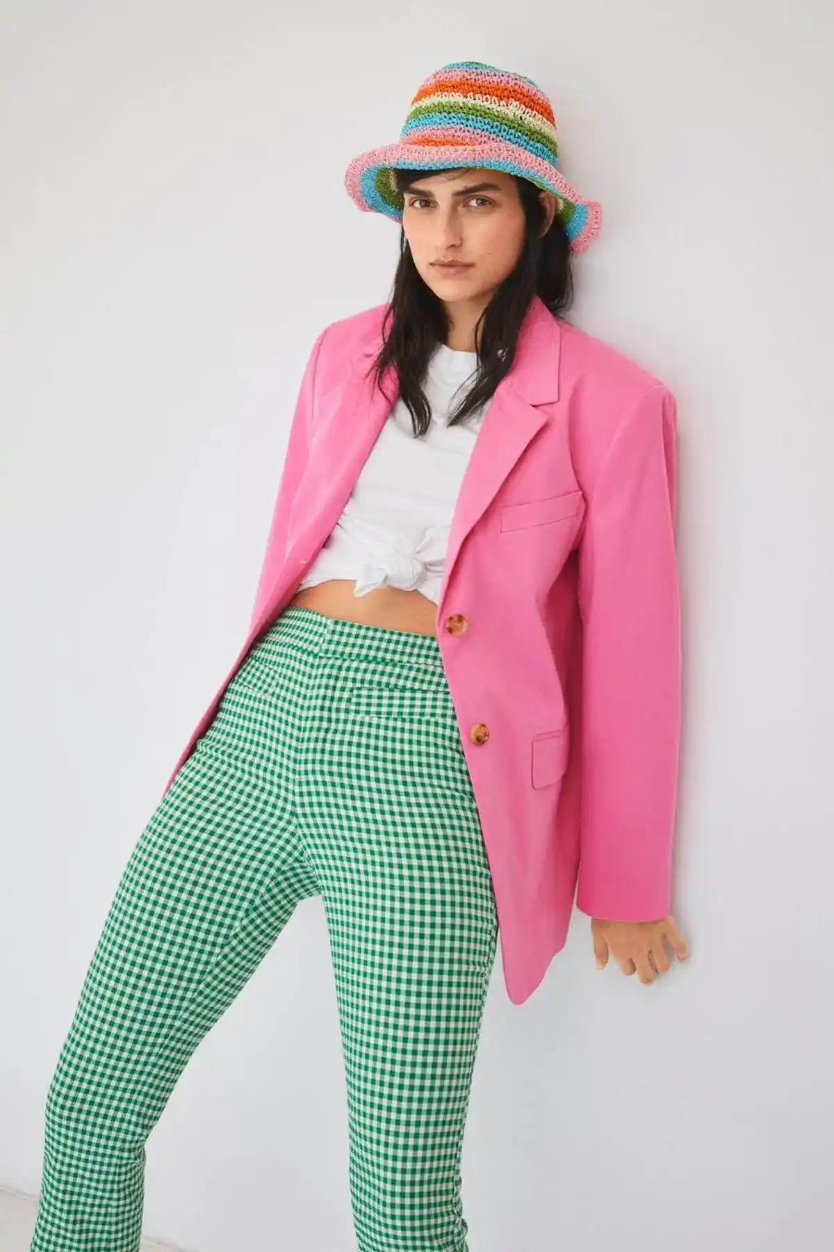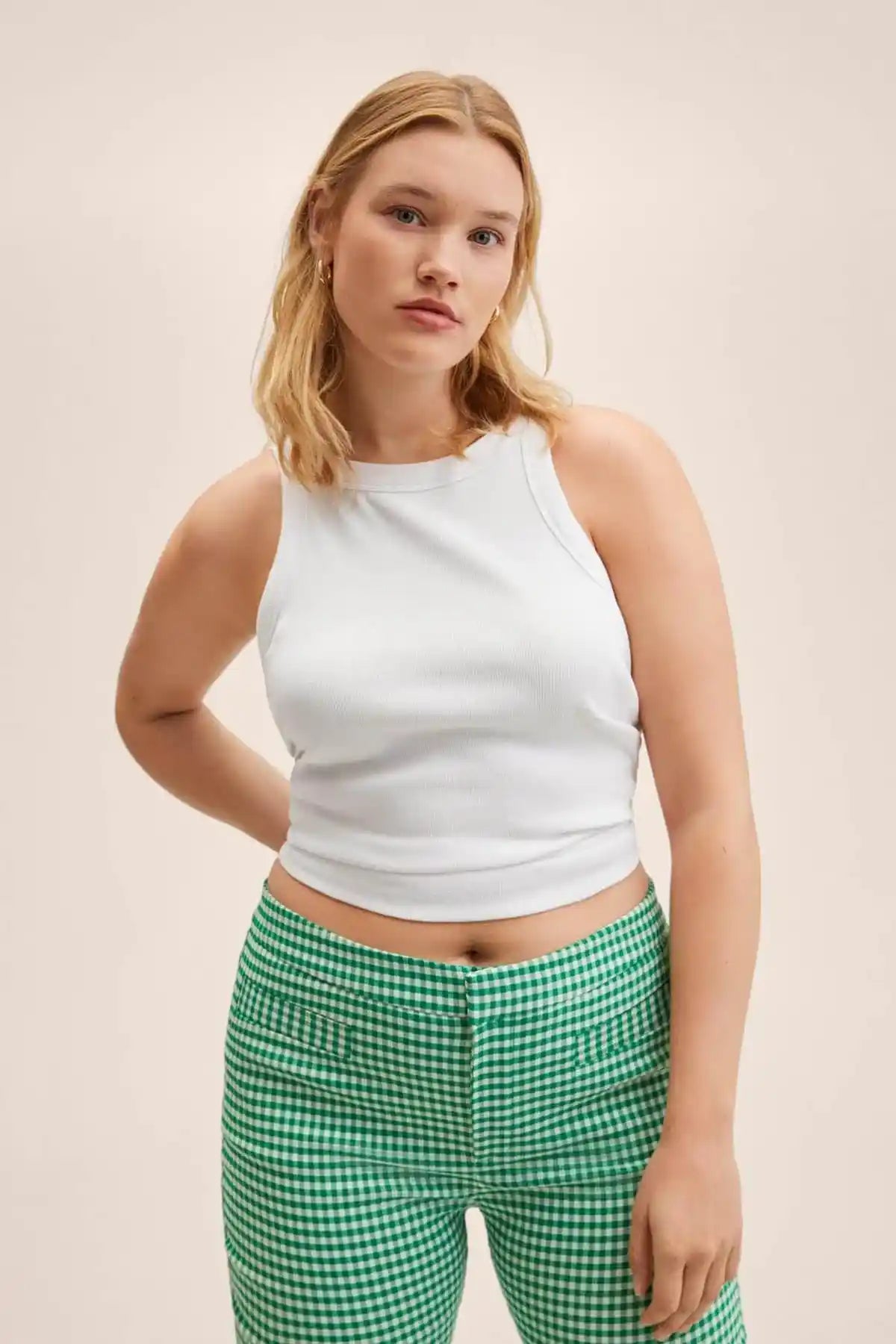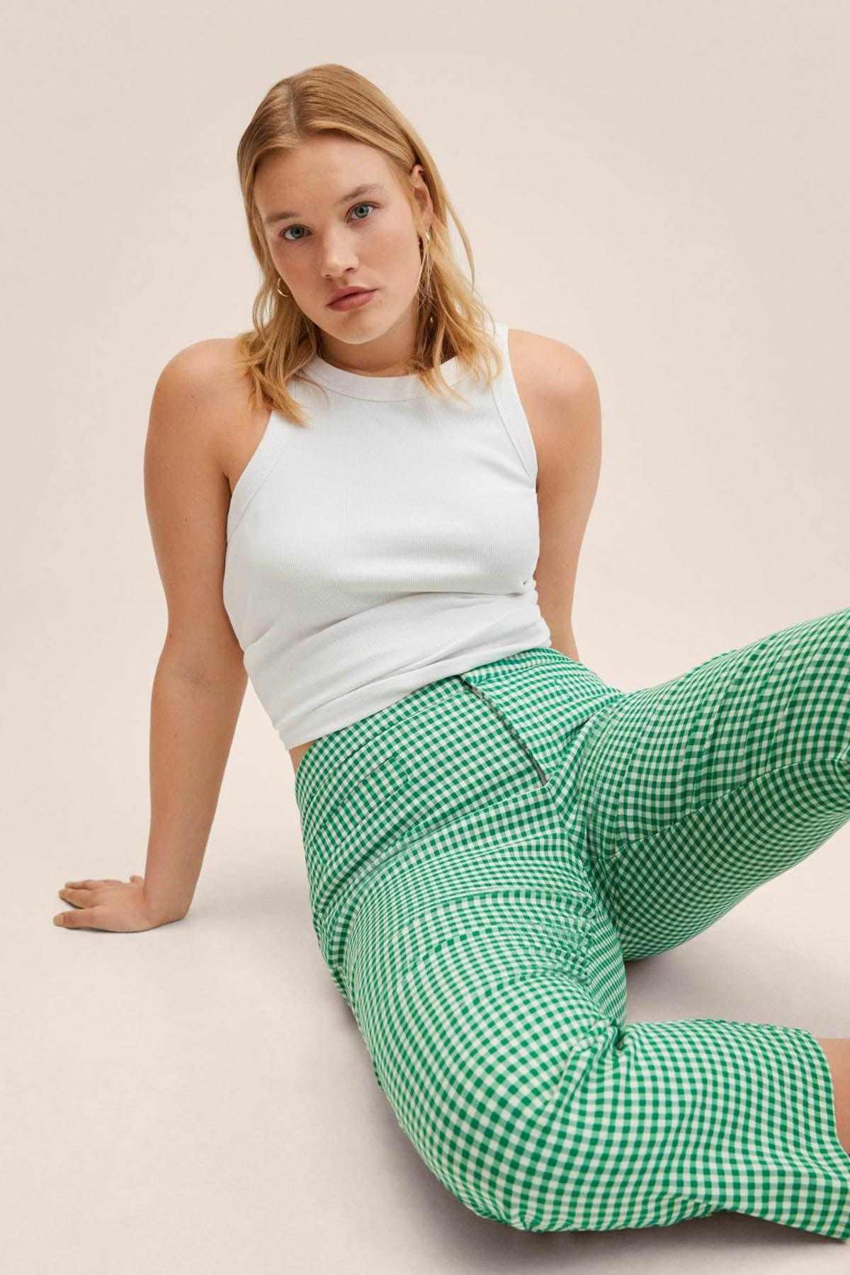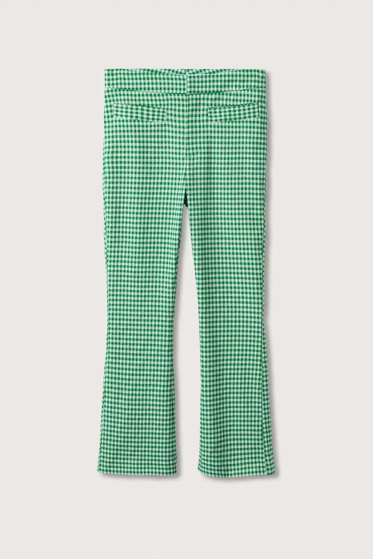 Committed Collection. Recycled polyester blend fabric. Bootcut design. Cropped design. Medium waist. Decorative pockets on the front. Concealed button, hook and zip fastening. Available in plain and patterned. Plus Size Available.