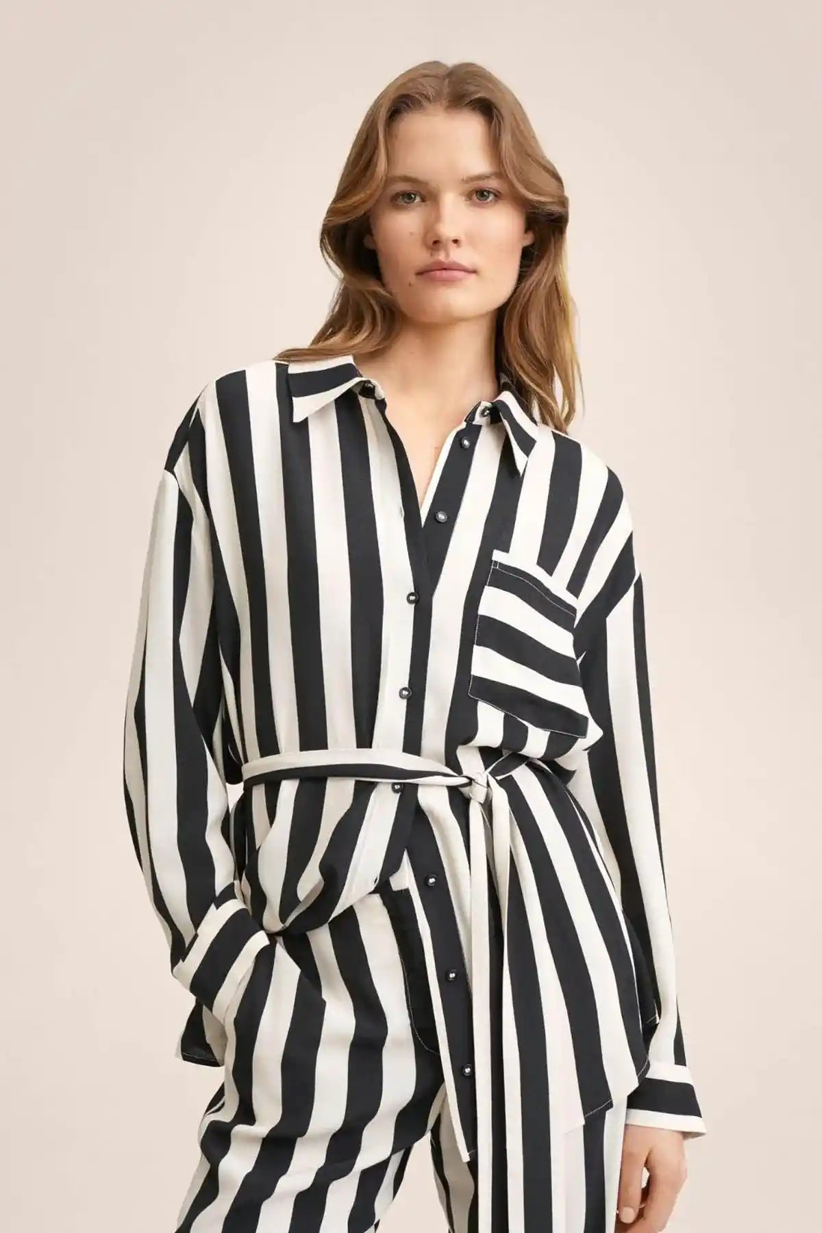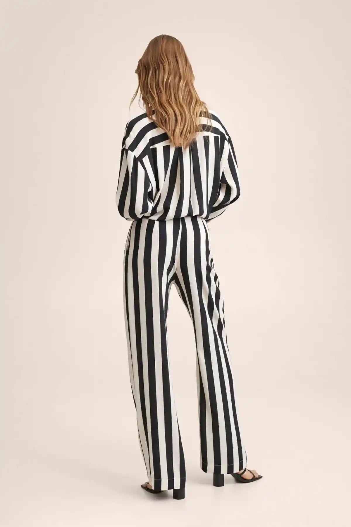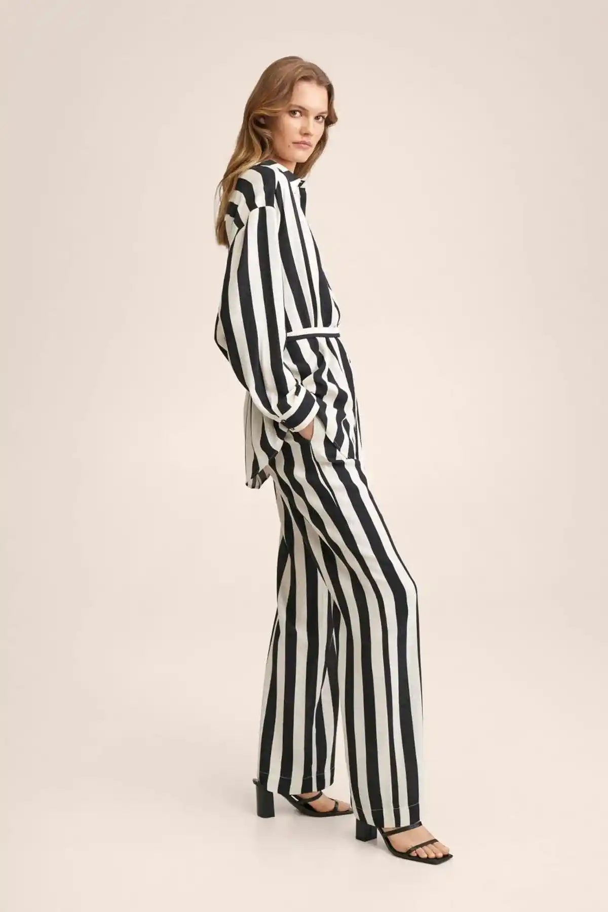 Committed Collection. Light fabric. Flowy fabric. Striped print. Long design. Straight design. High waist. Concealed button, hook and zip fastening.