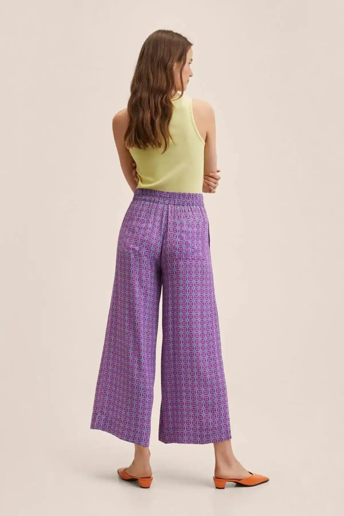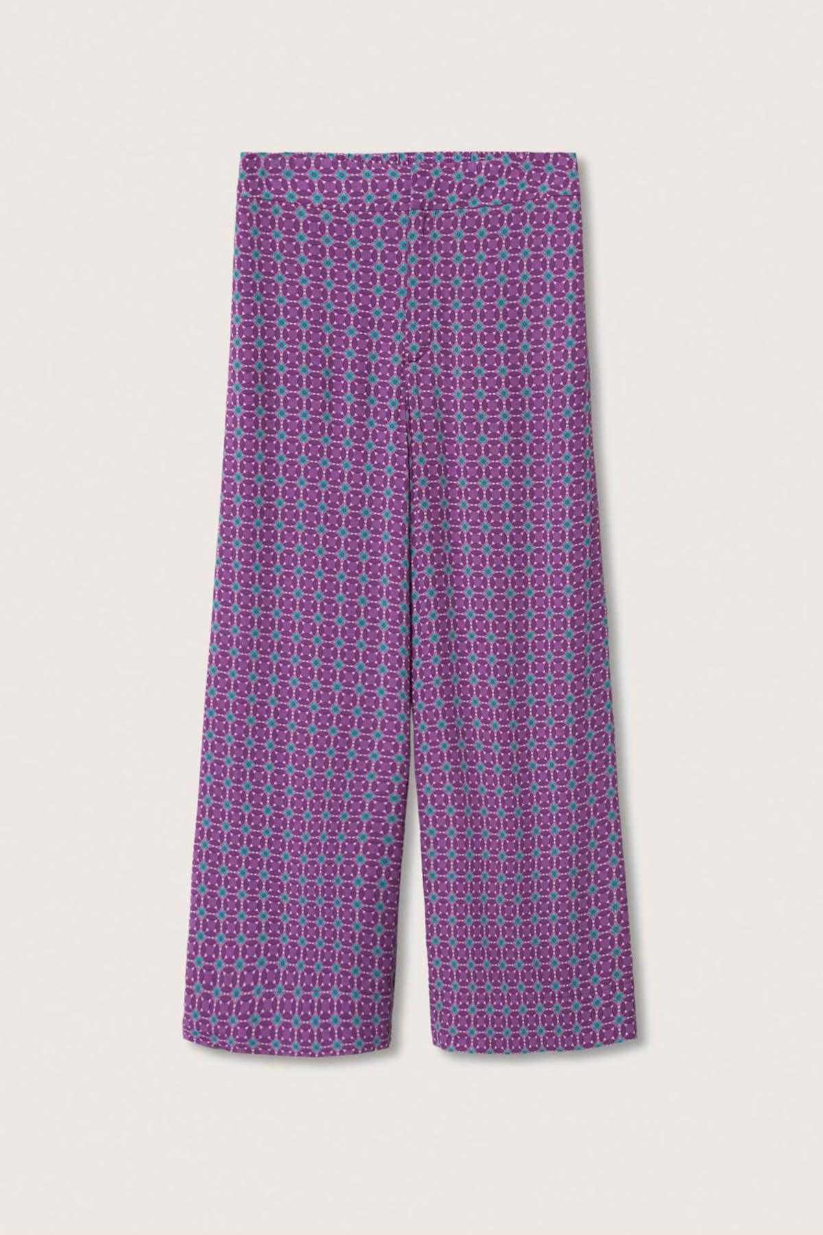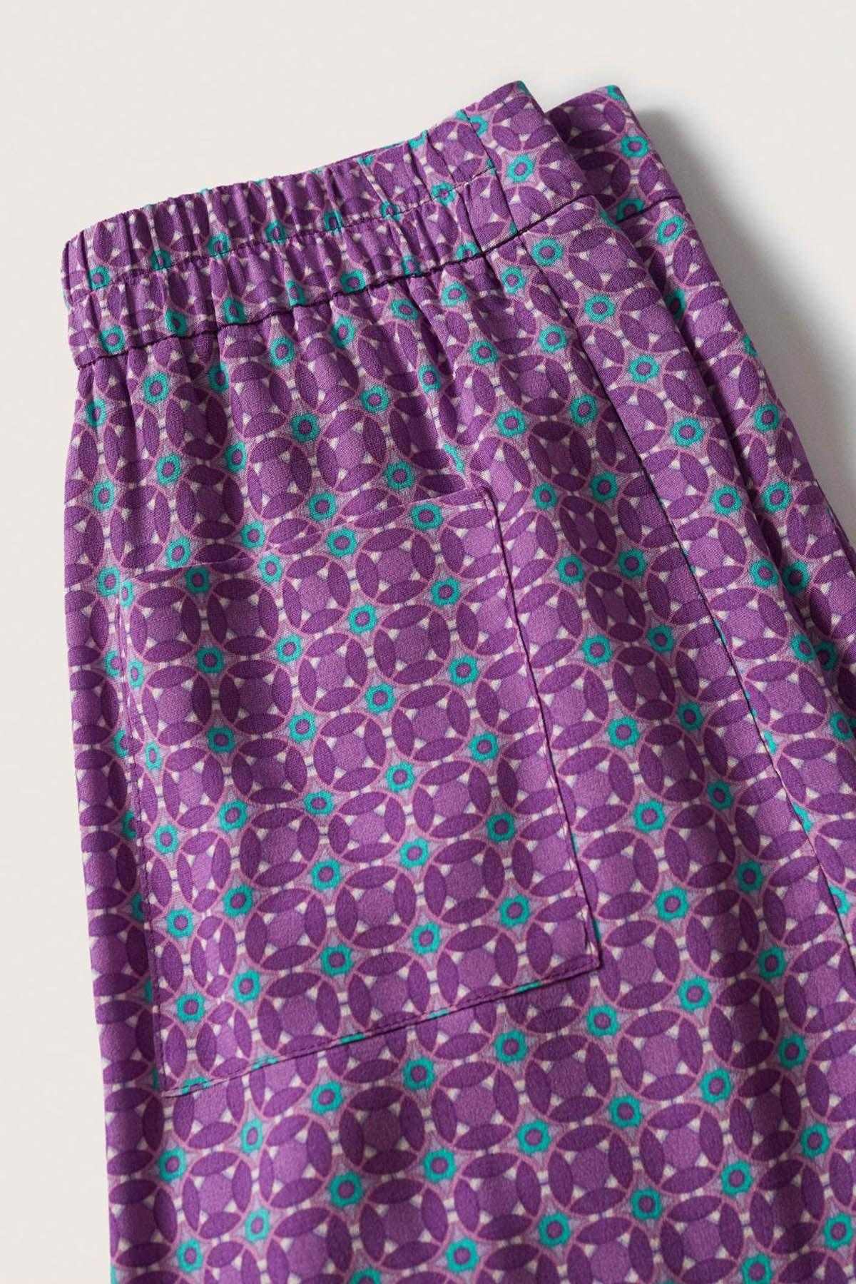 Flowy fabric. Printed design. Culotte design. Two side pockets. Zip and hook fastening.