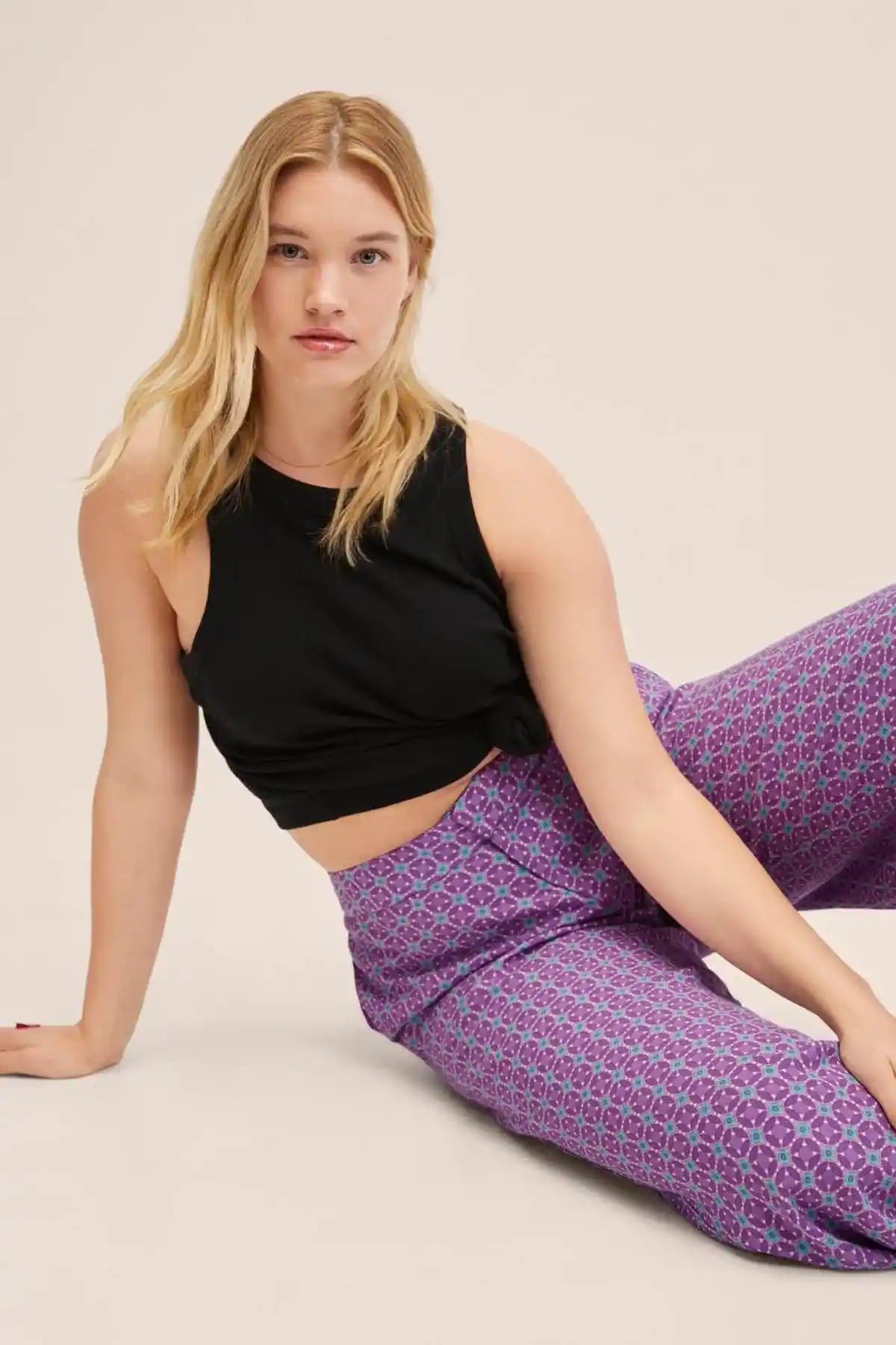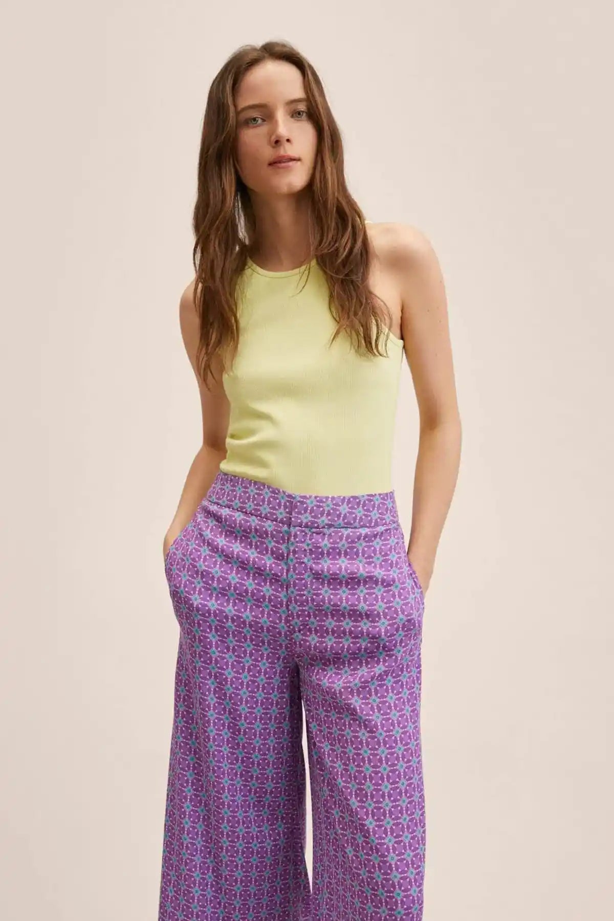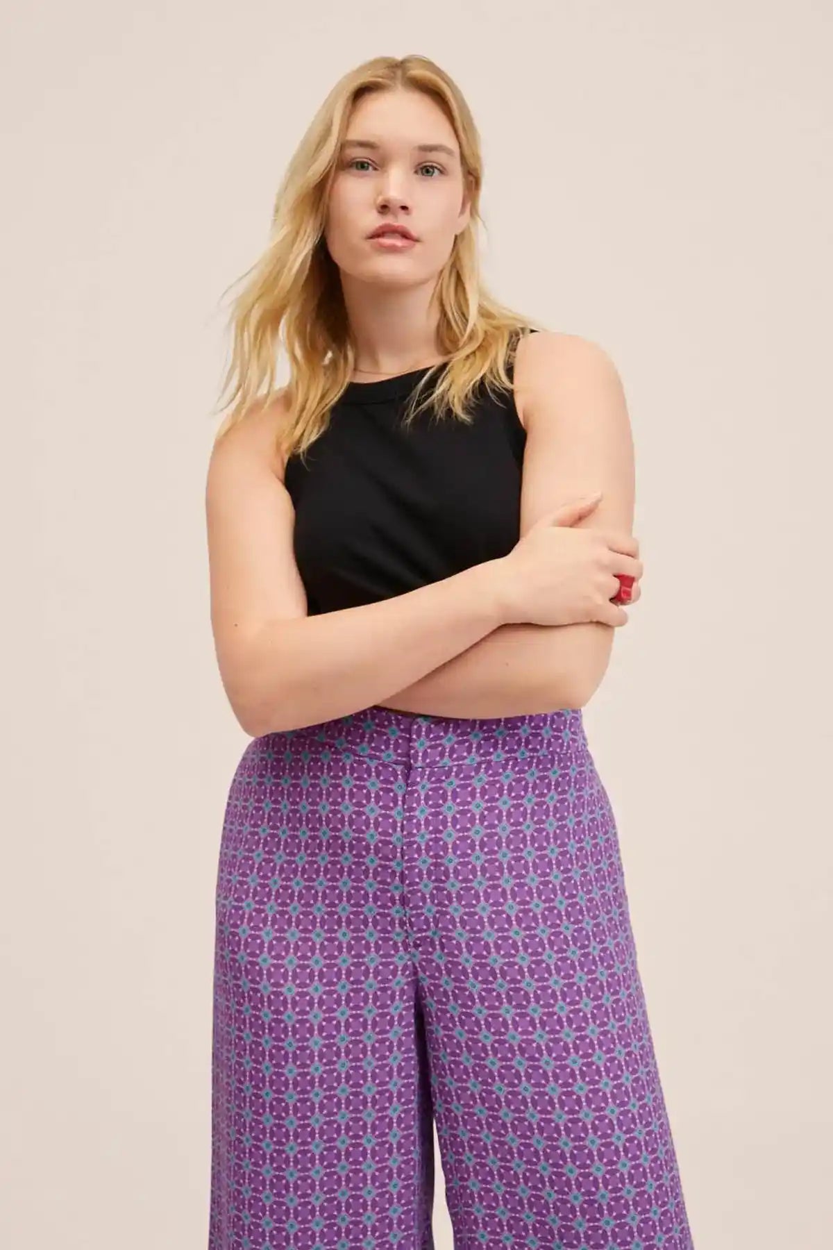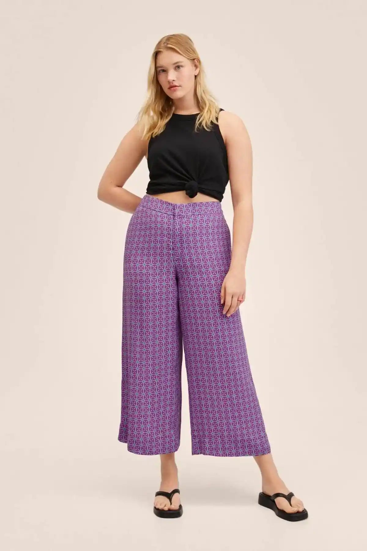 Flowy fabric. Printed design. Culotte design. Two side pockets. Zip and hook fastening.