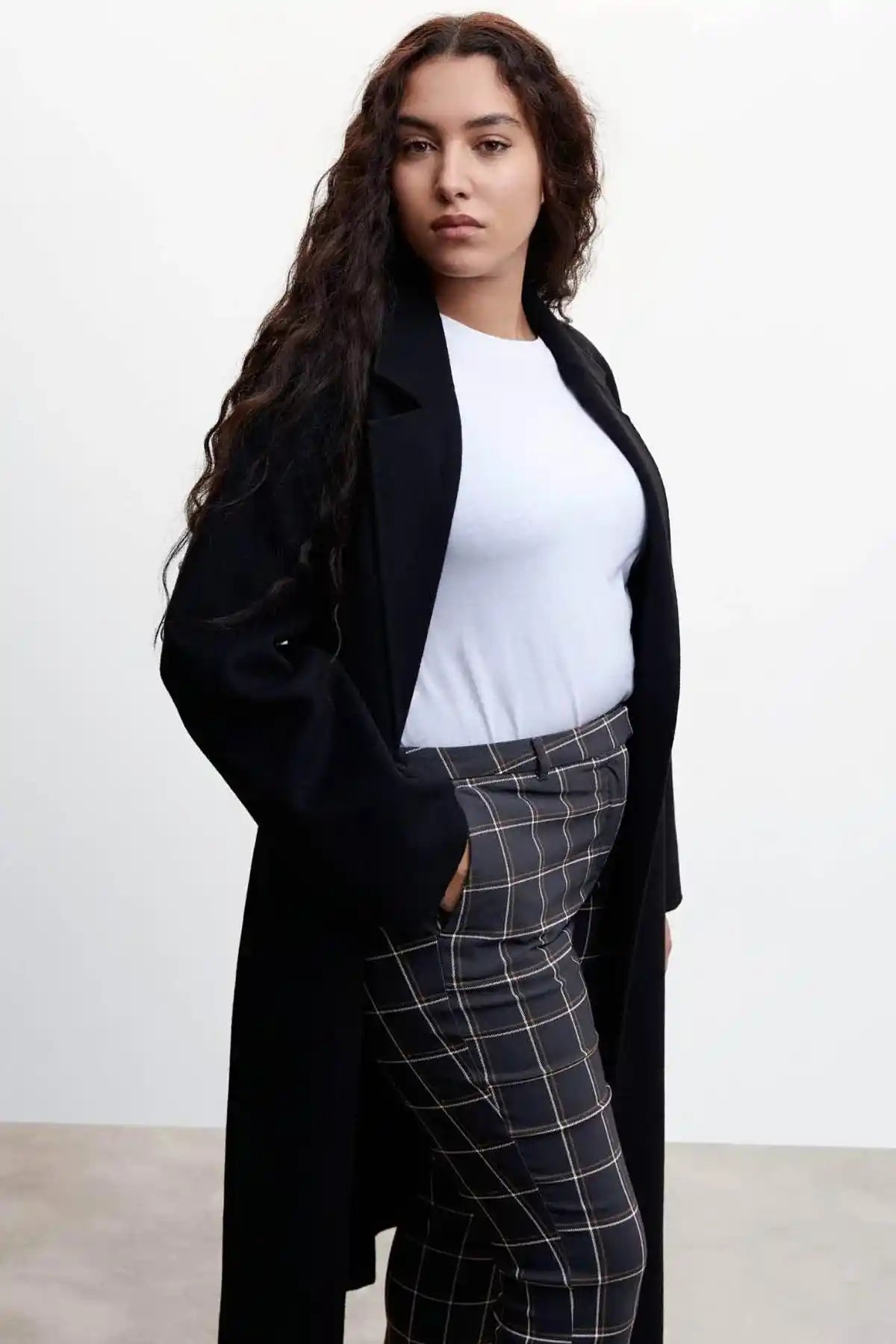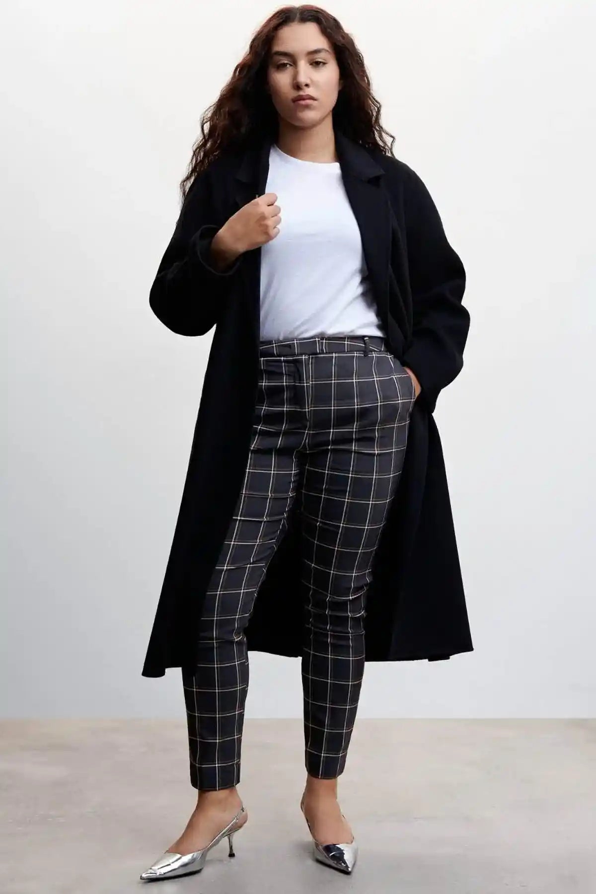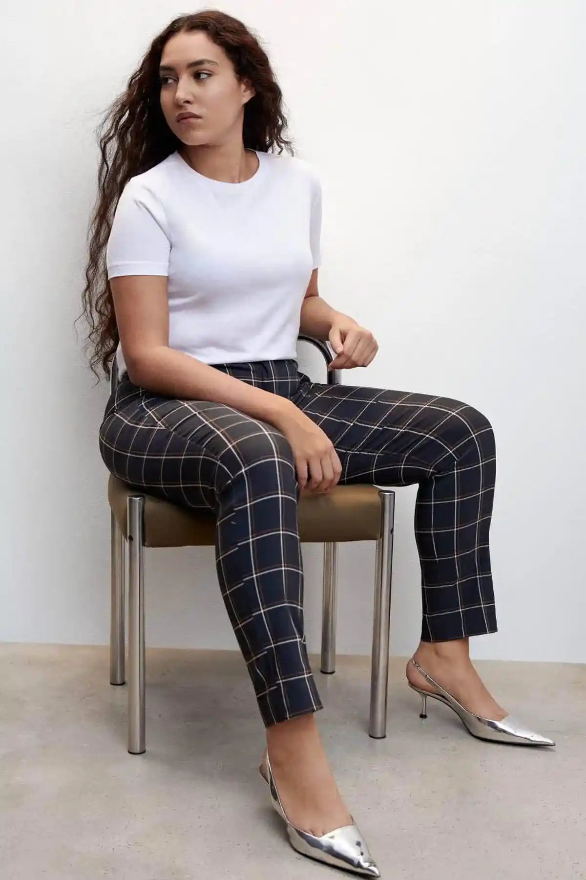Flowy fabric. Skinny fit. Cropped design. Medium waist. Suit style. Two side pockets. Two welt pockets on the back. Loops. Inner lining. Zip and one button fastening. Plus Size Available.