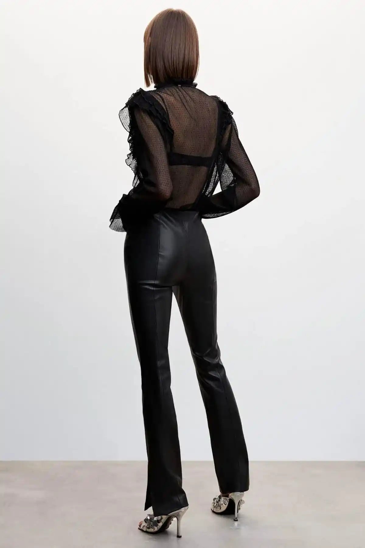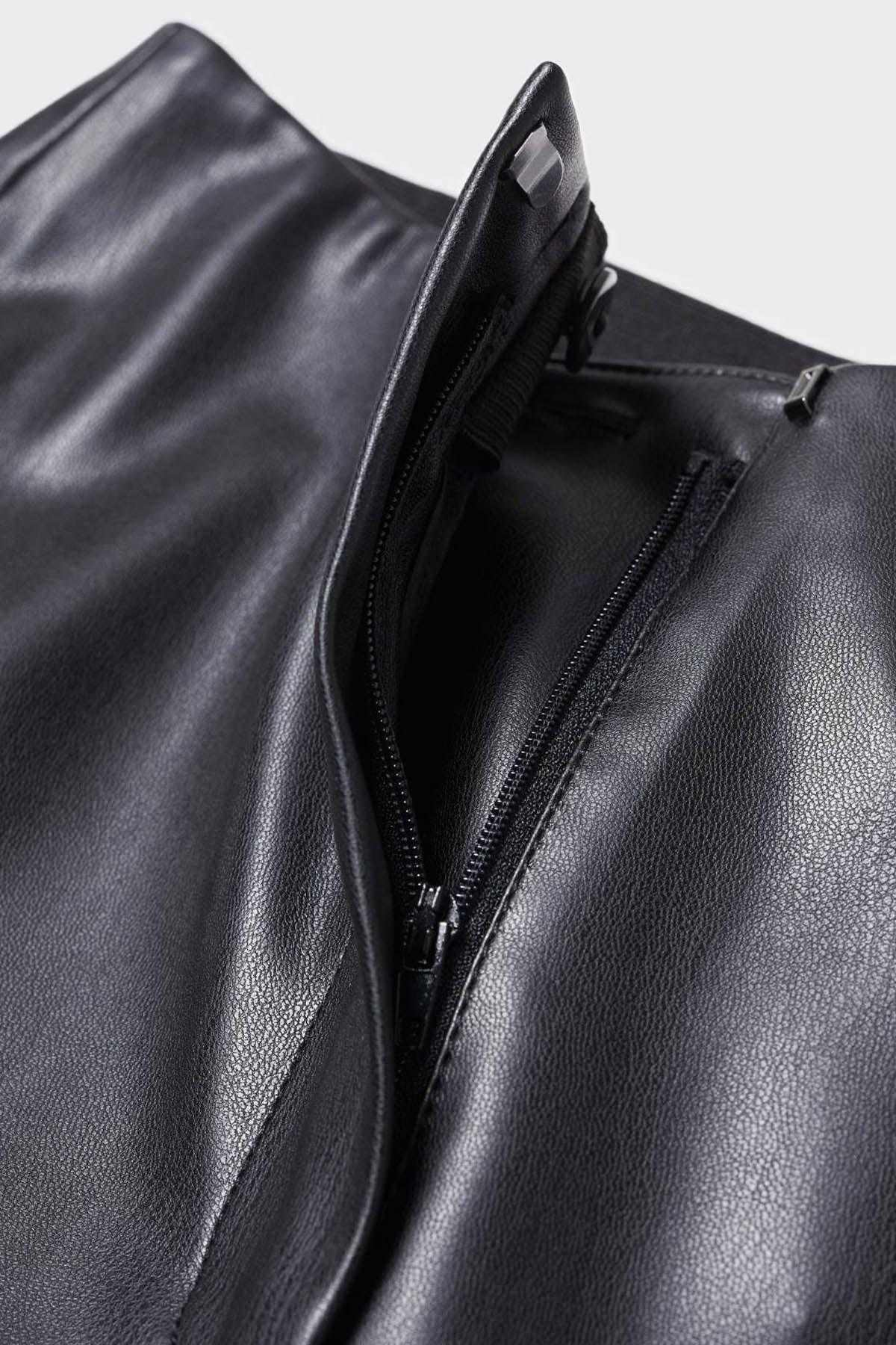 Faux leather. Flare design. Zip and hook fastening. Side slit hem. Plus Size Available.