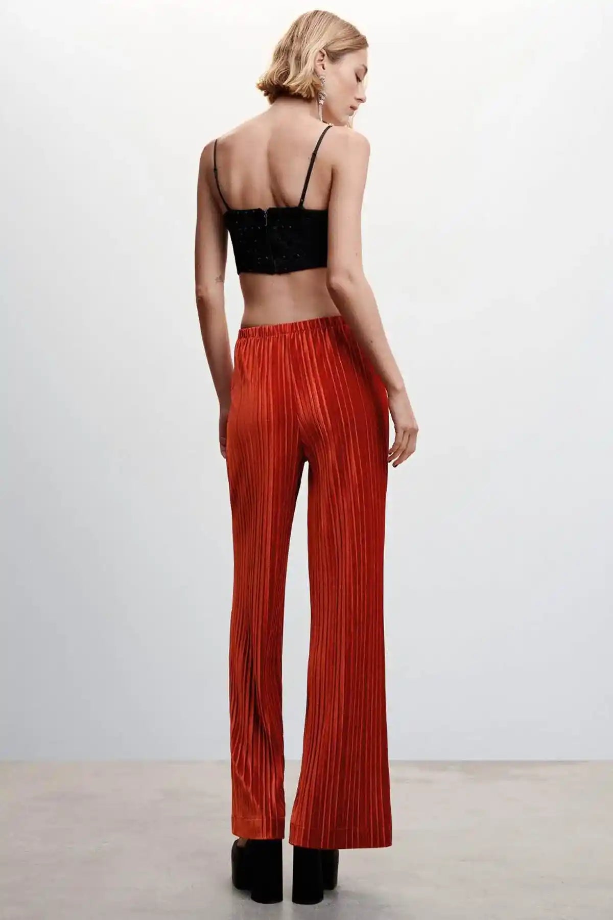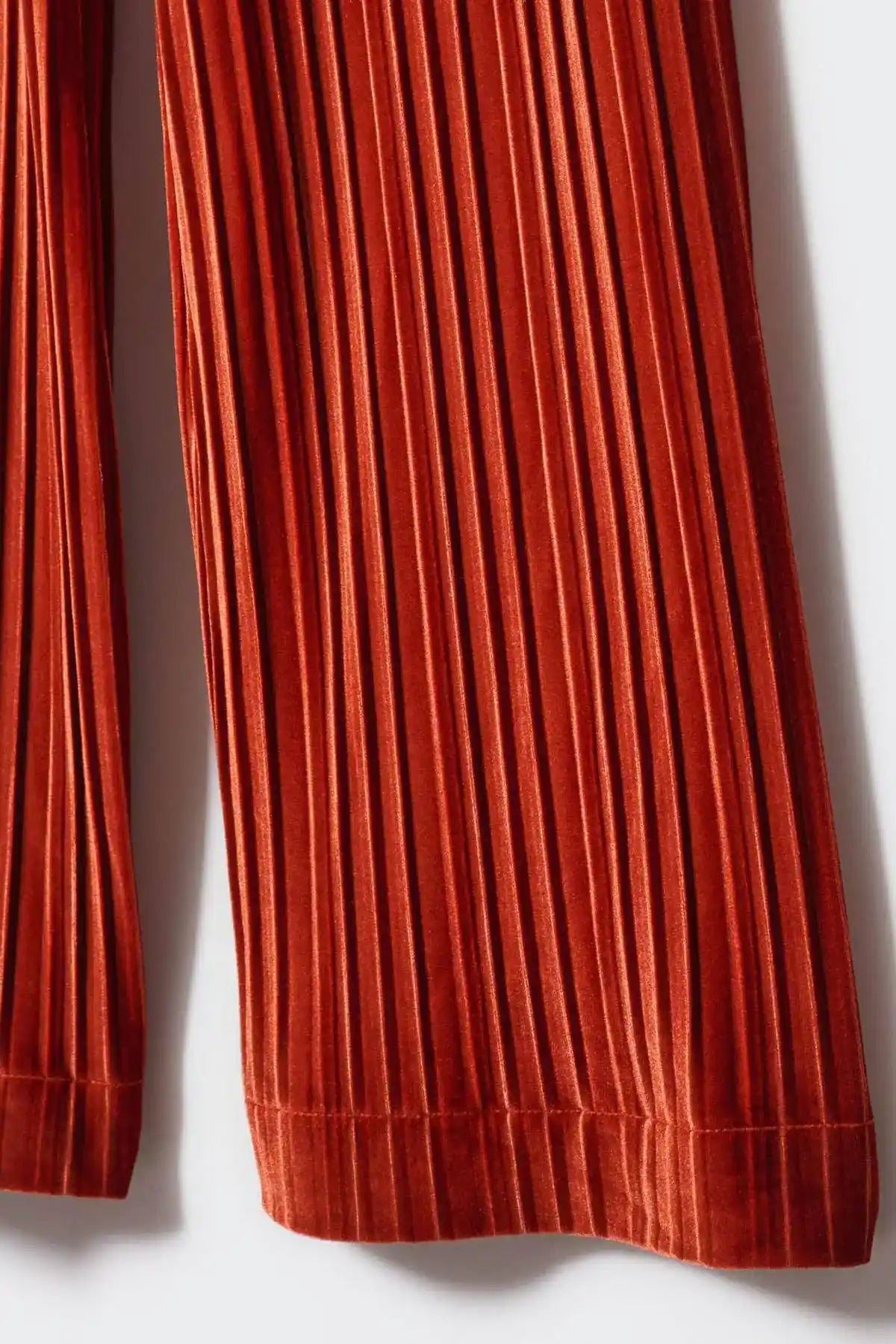 Velvet fabric. Pleated fabric. Flowy fabric. Palazzo design. Long design. Elastic waist. Party and events collection.