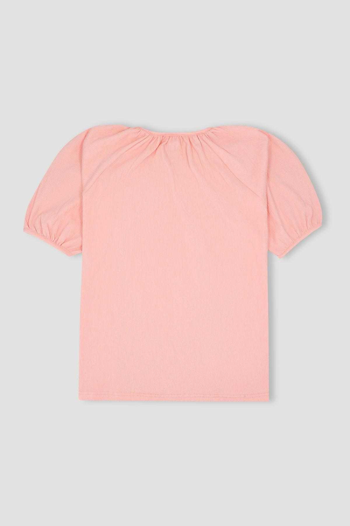 96% Cotton 3% Polyester 1% Elastane. Casual And Comfortable Top With Pleated Crew Neck. Featuring Short Elasticated Sleeves.